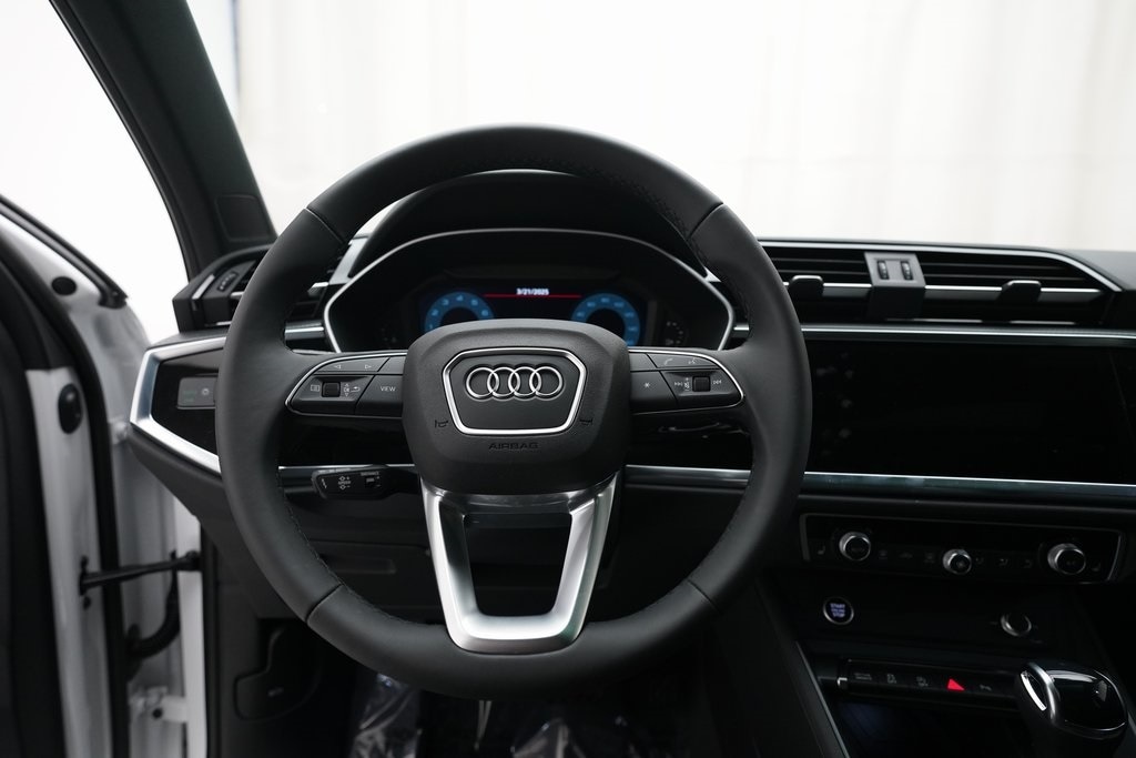 2025 Audi Q3 S Line 45 TFSI finished in Arkona White over Black Leather. This retired Mobility Unit comes with a clean CarFax Report and is proudly offered for sale with an Audi Certified Pre-Owned Warranty.