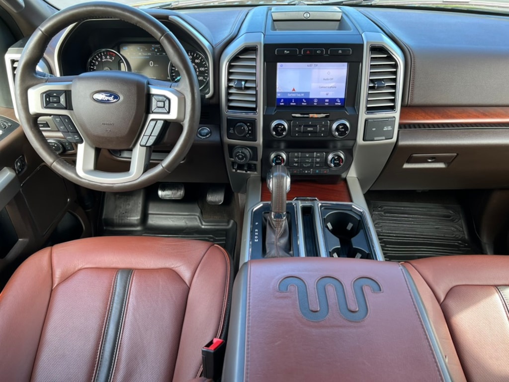 Ford Blue Advantage: Blue Certified Certified, 4D SuperCrew, 3.5L V6 EcoBoost, 4WD, 20" Machined-Aluminum Wheels, 360 Camera w/Split-View Display, Active Park Assist, Bright Belt Moldings, Chrome Door Handles w/Body-Color Strap, Chrome Skull Caps on Exterior Mirrors, Class IV Trailer Hitch Receiver, Engine Oil Cooler, Equipment Group 601A Luxury, Extended Range 36 Gallon Fuel Tank, Front & Rear Chrome Bumpers, GVWR: 7,000 lbs Payload Package, Inflatable Rear Safety Belts, King Ranch Chrome Appearance Package, King Ranch Monochromatic Paint Package, Multi-Contour Driver & Passenger Seats, Navigation System, Painted Body-Color Wheellip Molding, Power-Deployable Running Boards, Pro Trailer Backup Assist, Tailgate Step w/Tailgate Lift Assist, Technology Package, Tough Bed Spray-In Bedliner, Trailer Tow Package, Twin Panel Moonroof, Upgraded Front Stabilizer Bar, Wheels: 20" Chrome-Like PVD, 10 Speakers, 3.31 Axle Ratio, 4-Wheel Disc Brakes, ABS brakes, Adaptive Cruise Control, Adjustable pedals, Air Conditioning, AM/FM radio: SiriusXM, Auto High-beam Headlights, Auto tilt-away steering wheel, Auto-dimming door mirrors, Auto-dimming Rear-View mirror, Automatic temperature control, Brake assist, Compass, Delay-off headlights, Driver door bin, Driver vanity mirror, Dual front impact airbags, Dual front side impact airbags, Electronic Locking w/3.55 Axle Ratio, Electronic Stability Control, Emergency communication system: SYNC 3 911 Assist, Exterior Parking Camera Rear, Front anti-roll bar, Front Bucket Seats, Front Center Armrest, Front dual zone A/C, Front fog lights, Front reading lights, Front wheel independent suspension, Fully automatic headlights, Garage door transmitter, Genuine wood dashboard insert, Genuine wood door panel insert, Heated door mirrors, Heated front seats, Heated rear seats, Heated steering wheel, Illuminated entry, Integrated Trailer Brake Controller, King Ranch Leather Bucket Seats, LED Sideview Mirror Spotlights, Low tire pressure warning, Memory seat, Occupant sensing airbag, Outside temperature display, Overhead airbag, Overhead console, Panic alarm, Passenger door bin, Passenger vanity mirror, Pedal memory, Power door mirrors, Power driver seat, Power passenger seat, Power steering, Power windows, Radio data system, Radio: B&O Sound System by Bang & Olufsen, Rain sensing wipers, Rear Parking Sensors, Rear reading lights, Rear seat center armrest, Rear step bumper, Rear window defroster, Remote keyless entry, Security system, SiriusXM Radio, Speed control, Speed-sensing steering, Split folding rear seat, Steering wheel memory, Steering wheel mounted audio controls, SYNC 3, Tachometer, Telescoping Power Glass Trailer Tow Mirrors w/Heat, Telescoping steering wheel, Tilt steering wheel, Traction control, Tray Style Floor Liner, Trip computer, Turn signal indicator mirrors, Variably intermittent wipers, Ventilated front seats, Voice-Activated Touchscreen Navigation, Voltmeter, 4D SuperCrew, 3.5L V6 EcoBoost, 4WD, 20" Machined-Aluminum Wheels, 360 Camera w/Split-View Display, Active Park Assist, Bright Belt Moldings, Chrome Door Handles w/Body-Color Strap, Chrome Skull Caps on Exterior Mirrors, Class IV Trailer Hitch Receiver, Engine Oil Cooler, Equipment Group 601A Luxury, Extended Range 36 Gallon Fuel Tank, Front & Rear Chrome Bumpers, GVWR: 7,000 lbs Payload Package, Inflatable Rear Safety Belts, King Ranch Chrome Appearance Package, King Ranch Monochromatic Paint Package, Multi-Contour Driver & Passenger Seats, Navigation System, Painted Body-Color Wheellip Molding, Power-Dep