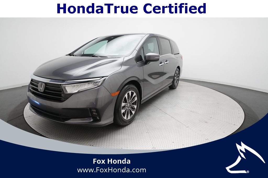 Modern Steel Metallic EX-L FWD 10-Speed Automatic 3.5L V6 SOHC i-VTEC 24V **BLUETOOTH**, **REAR VIEW CAMERA**, **BLINDSPOT DETECTION**, **ADAPTIVE CRUISE CONTROL**, **LEATHER**, **HEATED SEATS**, **SUNROOF/MOONROOF**, **LANE KEEPING ASSIST**, **REAR PARK ASSIST**, **APPLE CAR PLAY/ANDROID AUTO**, **ROAD DEPARTURE ALERT**, **POWER LIFT GATE**, Odyssey EX-L, 4D Passenger Van, 3.5L V6 SOHC i-VTEC 24V, 10-Speed Automatic, FWD, Modern Steel Metallic, Black w/Leather Seat Trim, 18" Machine-Finished Alloy Wheels, 3.61 Axle Ratio, 3rd Row Seats, 4-Wheel Disc Brakes, 7 Speakers, A/V remote: CabinControl, ABS Brakes, Adaptive Cruise Control: Adaptive Cruise Control (ACC) with Low-Speed Follow, Air Conditioning, Alloy wheels, AM/FM Radio, Available Sirius XM Radio, Anti-whiplash front head restraints, Apple CarPlay/Android Auto, Auto High-beam Headlights, Auto-dimming Rear-View mirror, Automatic temperature control, Blind Spot Information (BSI) System warning, Brake Assist, Bumpers: body-color, Delay-off headlights, Driver door bin, Driver vanity mirror, Driver's Seat Mounted Armrest, Dual front impact airbags, Dual front side impact airbags, Dual-Climate Control, Electronic Stability Control, Four wheel independent suspension, Front anti-roll bar, Front Bucket Seats, Front Fog Lights, Front reading lights, Fully Automatic Headlights, Garage door transmitter: HomeLink, Heated Front Bucket Seats, Heated Front Seats, Heated Sideview Mirrors, Illuminated Entry, Knee airbag, Lane departure: Lane Keeping Assist System (LKAS) active, Leather Seat Trim, Leather steering wheel, Low tire pressure warning, Memory seat, Occupant sensing airbag, Outside Temperature Display, Overhead airbag, Overhead Console, Panic Alarm, Passenger door bin, Passenger seat mounted armrest, Passenger vanity mirror, Power Adjusting Driver Seat, Power Liftgate, Power Moonroof, Power passenger seat, Power Sideview Mirrors, Power Steering, Power Windows, Radio data system, Radio: 160-Watt AM/FM/HD/SiriusXM Audio System, Rear air conditioning, Rear anti-roll bar, Rear reading lights, Rear seat center armrest, Rear Spoiler, Rear Window Wiper, Rear-View Camera, Rear/Front Window Defroster, Reclining 3rd row seat, Remote Keyless Entry, Security System, Speed Control, Speed-Sensing Steering, Speed-Sensitive Wipers, Split Folding Rear Seat, Steering Wheel Mounted Controls, Tachometer, Telescoping steering wheel, Tilt steering wheel, Traction Control, Trip computer, Turn signal indicator mirrors, Variably intermittent wipers, Odyssey EX-L, 4D Passenger Van, 3.5L V6 SOHC i-VTEC 24V, 10-Speed Automatic, FWD, Modern Steel Metallic, Black w/Leather Seat Trim. Priced below KBB Fair Purchase Price! Recent Arrival! CARFAX One-Owner. Clean CARFAX. Certified.