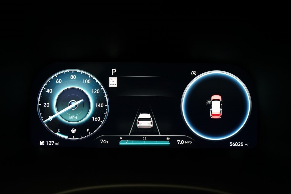 Hyundai Certified Used Vehicles Certified, 12 Speakers, 3.648 Axle Ratio, 3rd Row Seats, 4-Wheel Disc Brakes, ABS Brakes, Air Conditioning, Alloy wheels, AM/FM Radio, Available Sirius XM Radio, Apple CarPlay & Android Auto, Auto High-beam Headlights, Auto-dimming door mirrors, Auto-dimming Rear-View mirror, Auto-leveling suspension, Automatic temperature control, Brake Assist, Bumpers: body-color, Compass, Delay-off headlights, Driver door bin, Driver vanity mirror, Dual front impact airbags, Dual front side impact airbags, Dual-Climate Control, Electronic Stability Control, Emergency Communication System, Four wheel independent suspension, Front anti-roll bar, Front Bucket Seats, Front Center Armrest, Front reading lights, Fully Automatic Headlights, Garage door transmitter: HomeLink, harman/kardon® Speakers, Heads-Up Display, Heated & Ventilated Front Bucket Seats, Heated Front Seats, Heated Rear Seats, Heated Sideview Mirrors, Heated Steering Wheel, Illuminated Entry, Knee airbag, Leather Seat Trim, Low Tire Pressure Warning, Memory seat, Navigation System, Occupant sensing airbag, Option Group 01, Outside Temperature Display, Overhead airbag, Overhead console, Panic Alarm, Passenger door bin, Passenger vanity mirror, Power Adjusting Driver Seat, Power door mirrors, Power Liftgate, Power moonroof, Power passenger seat, Power steering, Power Windows, Radio data system, Radio: AM/FM/MP3 Premium Audio System, Rain Sensing Wipers, Rear air conditioning, Rear anti-roll bar, Rear audio controls, Rear reading lights, Rear side impact airbag, Rear Spoiler, Rear Window Wiper, Rear-View Camera, Rear/Front Window Defroster, Reclining 3rd row seat, Remote Keyless Entry, Security System, Speed control, Speed-sensing steering, Split Folding Rear Seat, Steering Wheel Mounted Controls, Tachometer, Telescoping steering wheel, Tilt steering wheel, Traction Control, Trip computer, Turn Signal Indicator Mirrors, Variably intermittent wipers, Ventilated Front Seats, Ventilated rear seats, Wheels: 20" x 7.5J Alloy.