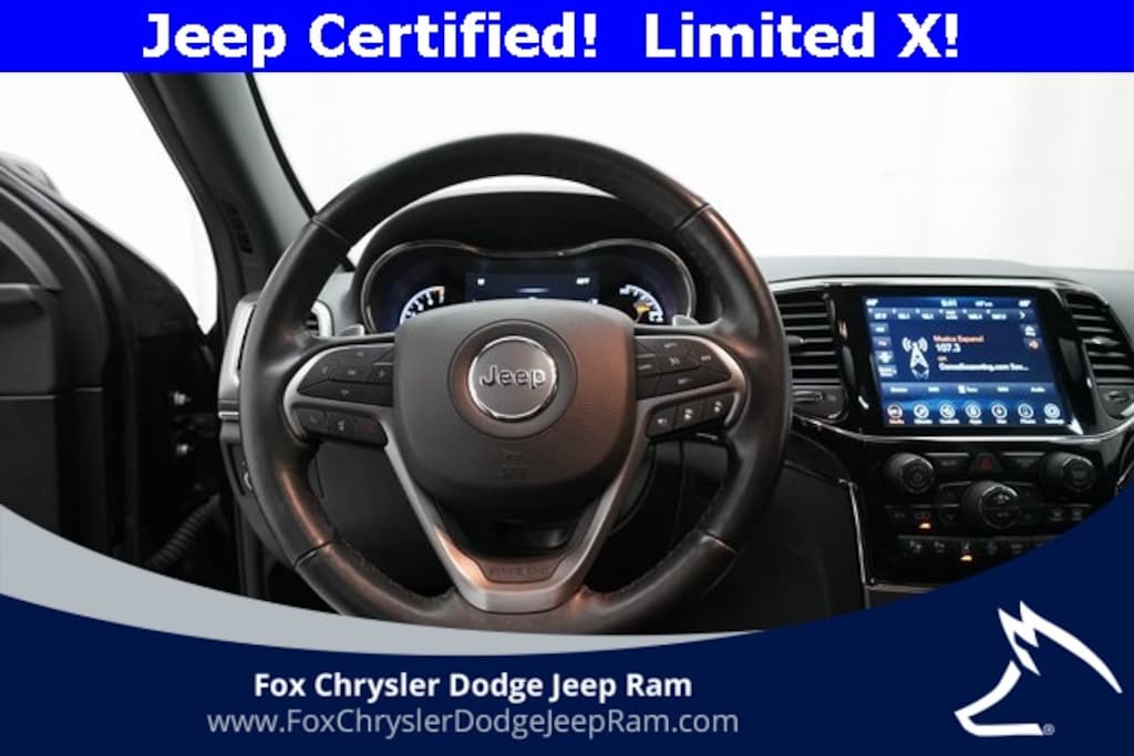 Certified. Diamond Black Crystal Pearlcoat 2021 Jeep Grand Cherokee Limited X 4WD Grand Cherokee Limited X, 4WD, 1-Year SiriusXM Guardian Trial, 20" x 8.0" Black Aluminum Wheels, 4G LTE Wi-Fi Hot Spot, 7 & 4 Pin Wiring Harness, 8.4" Touchscreen Display, Adaptive Cruise Control w/Stop, Advanced Brake Assist, Alpine Sound, Apple CarPlay, Apple CarPlay/Android Auto, Automatic temperature control, Available Sirius XM Radio, Bi-Xenon High-Intensity Discharge Headlamps, Body Color Door Handles, Body Color Fascias w/Gloss Black Insert, Body Color Sill Extension, Class IV Receiver Hitch, Dark Day Light Opening Moldings, Dark Headlamp Bezel Finish, Dark Lens Taillamps, Dual Dark Chrome Exhaust Tip, Dual-Climate Control, Front fog lights, Full Speed FWD Collision Warn Plus, Fully automatic headlights, Garage door transmitter, Gloss Black Exterior Accents, Gloss Black Jeep Badging, Gloss Black Roof Rails, Google Android Auto, GPS Antenna Input, GPS Navigation, HD Radio, Heated Front Seats, Heated Steering Wheel, Heavy-Duty Engine Cooling, Integrated Voice Command w/Bluetooth, Lane Departure Warning Plus, Leather Trimmed Bucket Seats, Leather Trimmed Seats, LED Daytime Running Headlamps, Limited X Badge, Limited X Package, Liquid Titanium Accents, Memory seat, MOPAR Cargo Area Liner, MOPAR Cargo Area Liner (DISC), MOPAR Interior Protection Group, MOPAR Slush Mats, MOPAR Slush Mats (DISC), Parallel & Perp Park Assist w/Stop, ParkView Rear Back-Up Camera, Power Moonroof Sunroof, Power passenger seat, Premium Accent Claddings, Premium LED Fog Lamps, Protech II, Quick Order Package 2BG Limited X (DISC), Radio: Uconnect 4C Nav w/8.4" Display, Rain Sensitive Windshield Wipers, Rear Load Leveling Suspension, SiriusXM Traffic Plus, SiriusXM Travel Link, Speed-Sensitive Wipers, Sport Hood, Steering Wheel Mounted Shift Control, Trailer Tow Group IV, Wheels: 18" x 8.0" Tech Gray Diamond Cut.