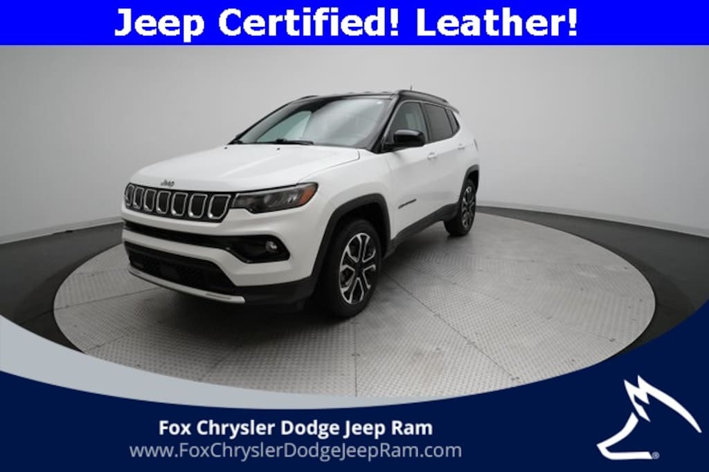 Jeep Factory Certified! New Rear Brakes with Rotors! CARFAX One-Owner. Clean CARFAX. Certified. Bright White Clearcoat 2022 Jeep Compass Limited 4WD 4WD, 10.1" Touchscreen Display, AM/FM Radio, Available Sirius XM Radio, Auto High-beam Headlights, Front Bucket Seats, Front fog lights, Fully automatic headlights, Heated Front Seats, Leather Trimmed Bucket Seats, ParkView Rear Back-Up Camera, Quick Order Package 2GG, Radio: Uconnect 5 w/10.1" Display, Wheels: 18" x 7" Painted Diamond Cut Aluminum.