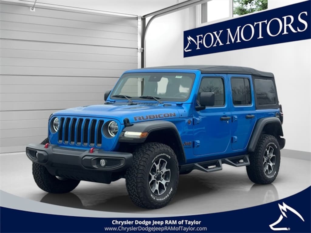 Certified. Hydro Blue Pearl Coat 2022 Jeep Wrangler Unlimited Rubicon 8-Speed Automatic 2.0L I4 DOHC Wrangler Unlimited Rubicon, 2.0L I4 DOHC, 4WD, Hydro Blue Pearl Coat, Black Cloth, Advanced Brake Assist, Advanced Safety Group, Air Conditioning, Apple CarPlay/Android Auto, Auto High Beam Headlamp Control, Blind Spot & Cross Path Detection, Cold Weather Group, Daytime Running Lamps LED Accents, Front LED Fog Lamps, Full Speed Forward Collision Warning Plus, Heated Front Seats, Heated Steering Wheel, LED Lighting Group, LED Premium Reflector Headlamps, LED Taillamps, ParkSense Rear Park Assist System, ParkView Rear Back-Up Camera, Quick Order Package 22R, Radio: Uconnect 4C Nav w/8.4" Display, Safety Group, Wheels: 17" x 7.5" Machined w/Black Pockets.