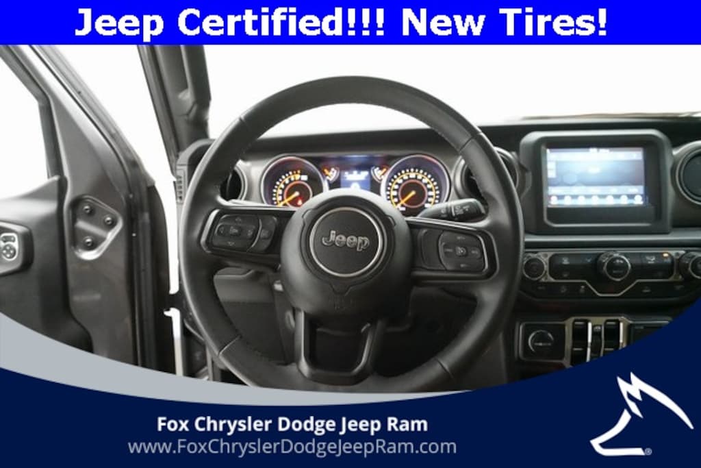 Jeep Factory Certified! New Tires! CARFAX One-Owner. Certified. Granite Crystal Metallic Clearcoat 2023 Jeep Gladiator Sport 4WD 4G LTE Wi-Fi Hot Spot, Apple CarPlay, Apple CarPlay/Android Auto, Automatic Headlamps, Deep Tint Sunscreen Windows, Freedom Panel Storage Bag, Front 1-Touch Down Power Windows, Front Bucket Seats, Front fog lights, Google Android Auto, Hard Top, Normal Duty Plus Suspension, ParkView Rear Back-Up Camera, Power Heated Mirrors, Power Tailgate Lock, Premium Wrapped Steering Wheel, Quick Order Package 24S Sport S, Radio: Uconnect 4 w/7" Display, Rear Sliding Window, Rear/Front Window Defroster, Remote Keyless Entry, Security Alarm, Speed Sensitive Power Locks, Sport S, Sun Visors w/Illuminated Vanity Mirrors, Wheels: 17" x 7.5 Tech Silver Aluminum.