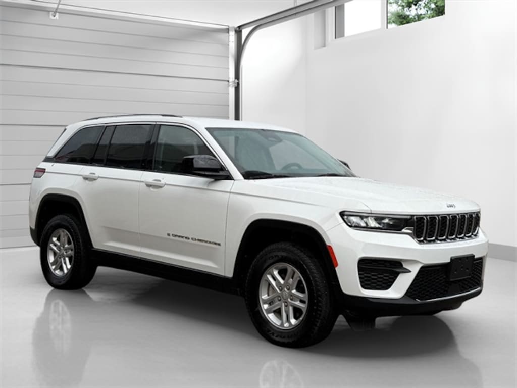 Certified. Bright White Clearcoat 2023 Jeep Grand Cherokee Laredo 8-Speed Automatic 3.6L V6 24V VVT Grand Cherokee Laredo, 3.6L V6 24V VVT, 4WD, Bright White Clearcoat, Black Cloth, Air Conditioning, Automatic temperature control, ParkView Rear Back-Up Camera, Quick Order Package 23A Laredo, Radio: Uconnect 5 w/8.4" Display, Steering wheel mounted audio controls, Wheels: 17" x 6.5" Fully Painted Aluminum.