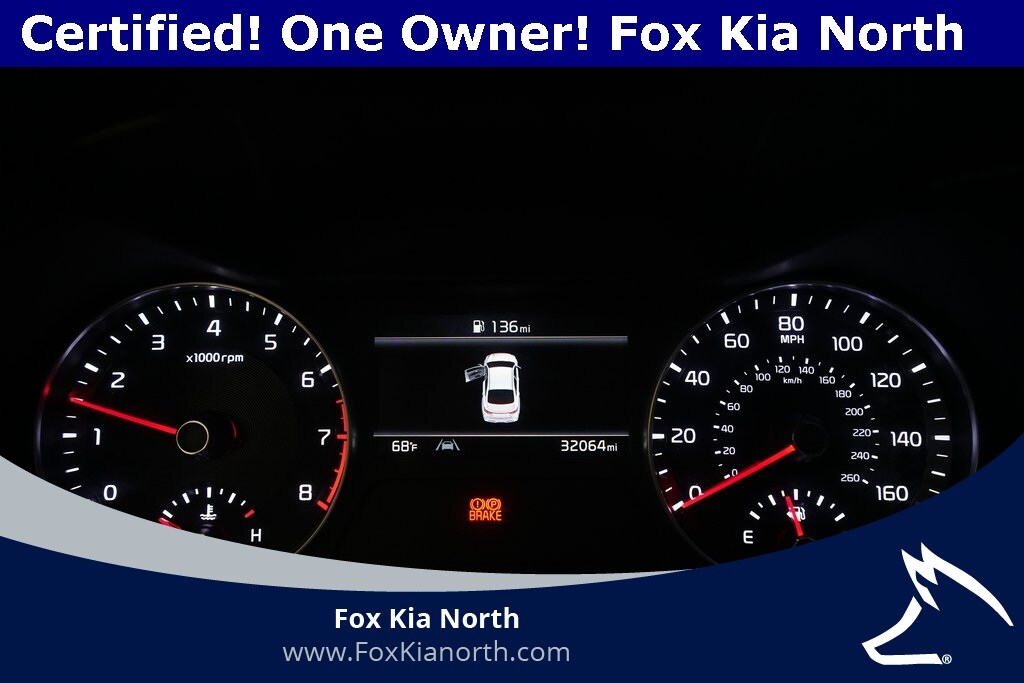 Kia Certified Pre-Owned Certified, 18" x 7.5J Alloy Wheels, 4-Wheel Disc Brakes, 8 Speakers, ABS brakes, Air Conditioning, Alloy wheels, AM/FM radio: SiriusXM, Apple CarPlay & Android Auto, Auto High-beam Headlights, Automatic temperature control, Brake assist, Bumpers: body-color, Delay-off headlights, Driver door bin, Driver vanity mirror, Dual front impact airbags, Dual front side impact airbags, Electronic Stability Control, Emergency communication system, Exterior Parking Camera Rear, Four wheel independent suspension, Front anti-roll bar, Front Bucket Seats, Front Center Armrest, Front dual zone A/C, Front fog lights, Front reading lights, Fully automatic headlights, harman/kardon® Speakers, Heated door mirrors, Heated Front Bucket Seats, Heated front seats, Illuminated entry, Leather Shift Knob, Leather steering wheel, Low tire pressure warning, Navigation System, Occupant sensing airbag, Outside temperature display, Overhead airbag, Overhead console, Panic alarm, Passenger door bin, Passenger vanity mirror, Power door mirrors, Power moonroof, Power steering, Power windows, Radio data system, Radio: harman kardon Premium Audio, Rear anti-roll bar, Rear reading lights, Rear seat center armrest, Rear window defroster, Remote keyless entry, Security system, Speed control, Split folding rear seat, Spoiler, Sport steering wheel, Steering wheel mounted audio controls, SynTex Seat Trim, Tachometer, Telescoping steering wheel, Tilt steering wheel, Traction control, Trip computer, Turn signal indicator mirrors, Variably intermittent wipers.