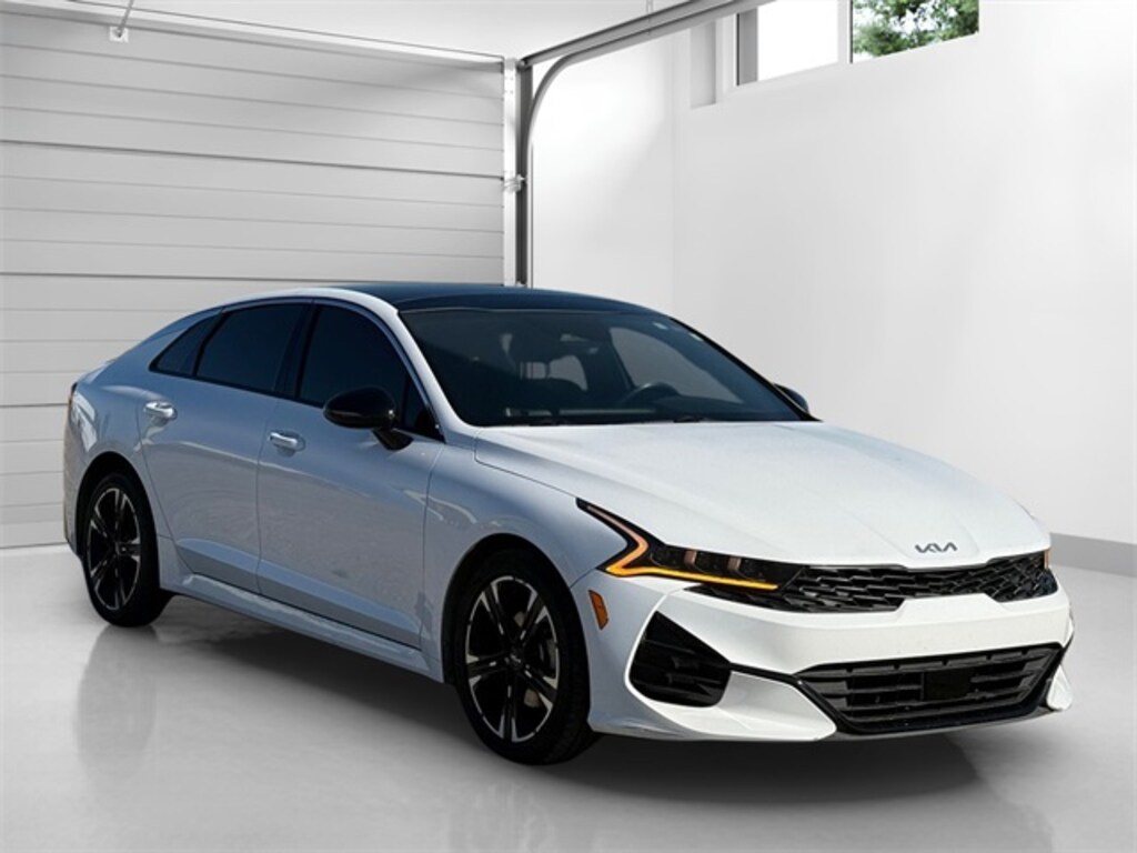 Glacial White Pearl 2023 Kia K5 GT-Line 8-Speed Automatic 1.6L I4 DGI Turbocharged DOHC 16V LEV3-ULEV70 180hp K5 GT-Line, 4D Sedan, 1.6L I4 DGI Turbocharged DOHC 16V LEV3-ULEV70 180hp, FWD, Glacial White Pearl, Black Cloth, Air Conditioning, Apple CarPlay & Android Auto, Automatic temperature control, Forward Collision Avoidance-Assist, Gloss Black Trim, GT-Line Panoramic Sunroof Package, GT-Line Premium Package, Highway Driving Assist, LED Interior Lighting, LED Projection Headlamps, Panoramic Sunroof, Power driver seat, Radio: AM/FM/MP3 Audio System, Smart Cruise Control w/Stop & Go, Steering wheel mounted audio controls, Wheels: 18" Gloss Black Machined Finish Alloy.