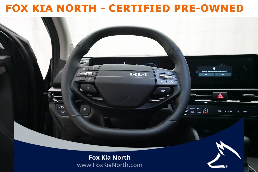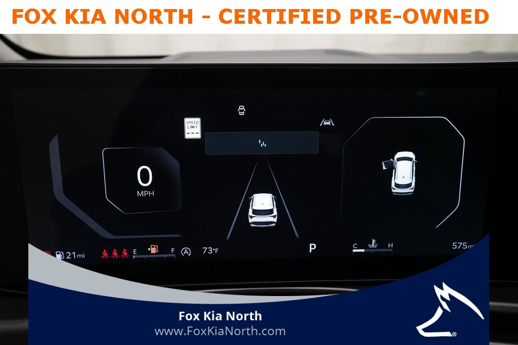 Kia Certified Pre-Owned Certified, AWD, 4-Wheel Disc Brakes, 8 Speakers, ABS brakes, Air Conditioning, All Weather Mats, Alloy wheels, AM/FM radio: SiriusXM, Auto High-beam Headlights, Automatic temperature control, Brake assist, Bumpers: body-color, Compass, Delay-off headlights, Driver door bin, Driver vanity mirror, Dual front impact airbags, Dual front side impact airbags, Electronic Stability Control, Emergency communication system: Kia Connect (includes 1 year free trial), Four wheel independent suspension, Front anti-roll bar, Front Bucket Seats, Front Center Armrest, Front dual zone A/C, Front fog lights, Front reading lights, Fully automatic headlights, harman/kardon® Speakers, Heated & Ventilated Front Bucket Seats, Heated door mirrors, Heated front seats, Heated steering wheel, Illuminated entry, Leather Shift Knob, Leather steering wheel, Low tire pressure warning, Memory seat, Navigation System, Occupant sensing airbag, Outside temperature display, Overhead airbag, Overhead console, Panic alarm, Passenger door bin, Passenger vanity mirror, Power door mirrors, Power driver seat, Power Liftgate, Power moonroof, Power passenger seat, Power steering, Power windows, Radio: AM/FM/HD Premium Audio System, Rain sensing wipers, Rear anti-roll bar, Rear reading lights, Rear seat center armrest, Rear side impact airbag, Rear window defroster, Rear window wiper, Remote keyless entry, Security system, Speed control, Speed-sensing steering, Split folding rear seat, Spoiler, Steering wheel mounted audio controls, SynTex Premium Leatherette Seat Trim, Tachometer, Telescoping steering wheel, Tilt steering wheel, Traction control, Trip computer, Turn signal indicator mirrors, Variably intermittent wipers, Ventilated front seats, Wheels: 19" x 7.5J Alloy, AWD.