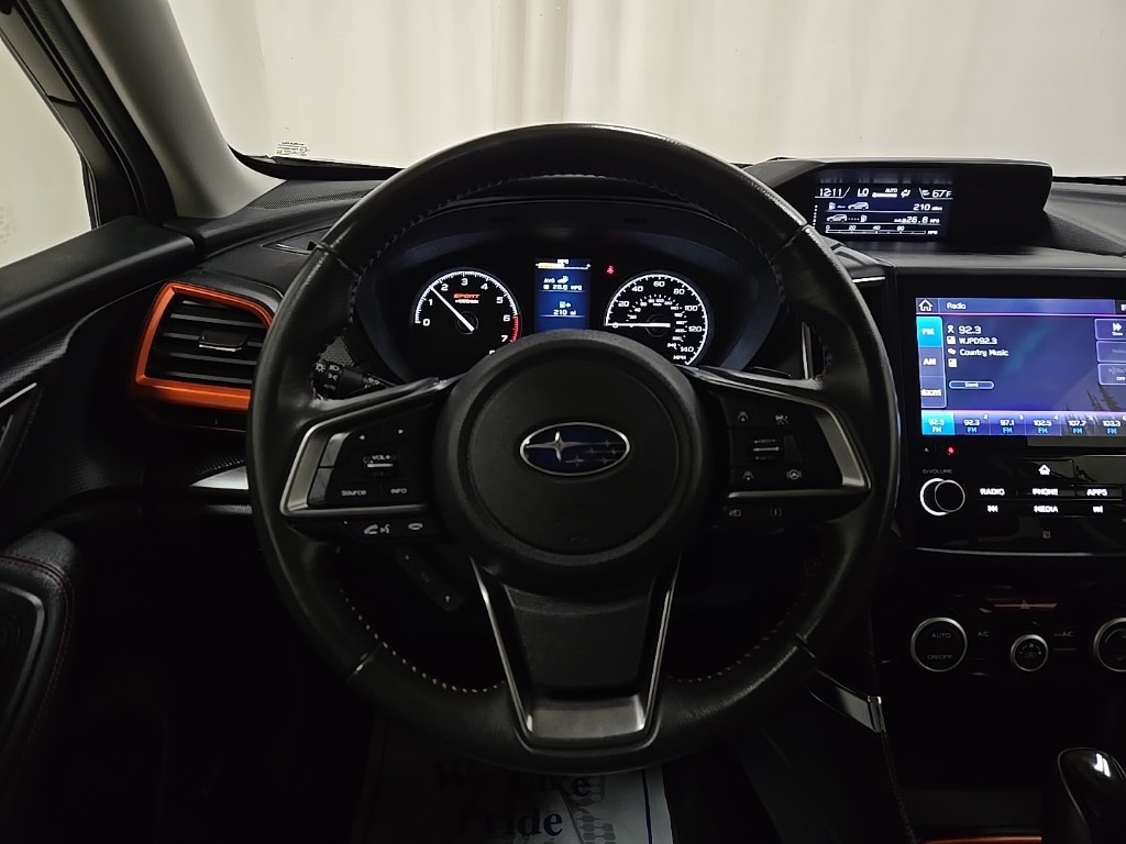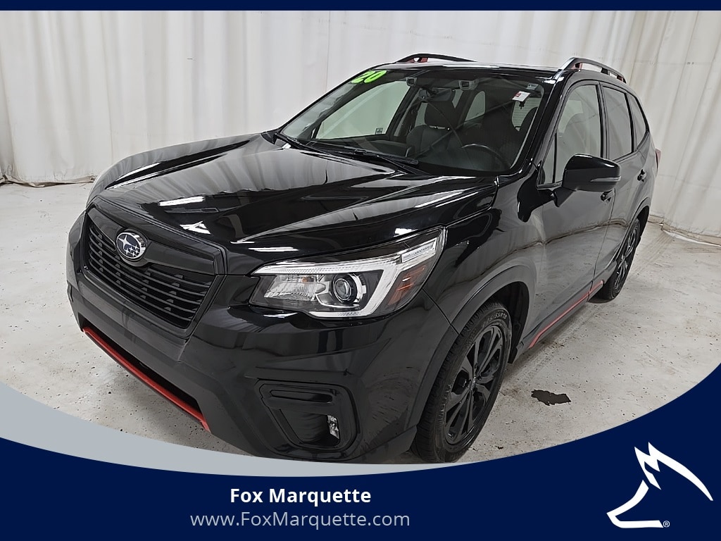 Crystal Black Silica 2020 Subaru Forester Sport AWD Lineartronic CVT 2.5L 4-Cylinder DOHC 16V VVT 3.70 Axle Ratio, 4-Wheel Disc Brakes, 6 Speakers, ABS brakes, Air Conditioning, All-Weather Floor Liners, Alloy wheels, AM/FM radio: SiriusXM, Audio Sys/Drvr Ast Tech/Rev Auto Brake/Pwr Rr Gate, Auto High-beam Headlights, Auto-Dimming Exterior Mirror w/Approach Lighting, Auto-Dimming Mirror w/Compass & HomeLink, Automatic temperature control, Blind Spot Detection w/Rear Cross Traffic Alert, Brake assist, Bumpers: body-color, Cargo Net, CD player, Driver door bin, Driver vanity mirror, Dual front impact airbags, Dual front side impact airbags, Electronic Stability Control, Emergency communication system: STARLINK Safety and Security (Subscription Required), Exterior Parking Camera Rear, Four wheel independent suspension, Front anti-roll bar, Front Bucket Seats, Front Center Armrest, Front fog lights, Front reading lights, Fully automatic headlights, harman kardon 576W Amp & Speaker System, Heated door mirrors, Heated Front Bucket Seats, Heated front seats, Illuminated entry, Knee airbag, Leather Shift Knob, Low tire pressure warning, Occupant sensing airbag, Outside temperature display, Overhead airbag, Overhead console, Paddle-Shift Control Switches, Panic alarm, Passenger door bin, Passenger vanity mirror, Popular Package #2, Power door mirrors, Power driver seat, Power moonroof: Panoramic, Power Rear Gate, Power steering, Power windows, Radio data system, Radio: Subaru Starlink 6.5" Multimedia Plus System, Radio: Subaru Starlink 8.0" Multimedia Plus System, Rear anti-roll bar, Rear Bumper Cover, Rear seat center armrest, Rear Seatback Protector, Rear window defroster, Rear window wiper, Remote keyless entry, Reverse Automatic Braking System (RAB), Roof rack: rails only, Security system, Speed control, Speed-sensing steering, Split folding rear seat, Spoiler, Sport Cloth Upholstery, STARLINK/Apple CarPlay/Android Auto, Steering wheel mounted audio controls, Tachometer, Telescoping steering wheel, Tilt steering wheel, Traction control, Trip computer, Turn signal indicator mirrors, Variably intermittent wipers, Wheels: 18" x 7.0J Black Finish Aluminum Alloy.