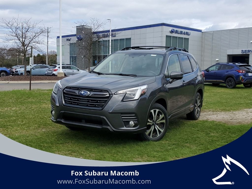 Fox Subaru of Macomb is excited to present this stunning 2023 Subaru Forester Limited in Magnetite Gray Metallic, a one-owner, clean Carfax, Subaru Certified Pre-Owned SUV that checks every box for drivers searching for a reliable, feature-packed compact SUV for sale. Powered by Subarus legendary Symmetrical All-Wheel Drive, this Forester Limited is built for Michigan weather and everyday adventures alike, and it comes backed by an impressive 7-year/100,000-mile powertrain warranty for added peace of mind. Inside, youll find premium comfort and technology, including heated front bucket seats, a heated steering wheel, power driver seat, and a panoramic power moonroof that floods the cabin with natural light. The Subaru STARLINK 8.0-inch Multimedia Navigation System keeps you connected with Apple CarPlay and Android Auto, while the harman/kardon 9-speaker premium audio system delivers concert-quality sound. Safety is front and center with Reverse Automatic Braking, Subaru EyeSight technologies, and a power liftgate for everyday convenience. Finished with stylish 18-inch black machine-finish alloy wheels, this low-mileage 2023 Subaru Forester Limited is the perfect blend of versatility, comfort, and confidence, making it an outstanding choice for anyone searching for a certified used Subaru Forester near Macomb or a dependable all-wheel-drive SUV with advanced safety and premium features.