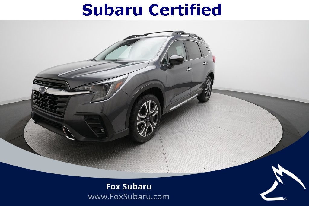 Subaru Certified Pre-Owned Certified, 14 Speakers, 3rd Row Seats, 4-Wheel Disc Brakes, ABS Brakes, Air Conditioning, All-Weather Floor Liners, Alloy wheels, AM/FM Radio, Available Sirius XM Radio, Auto High-beam Headlights, Auto-Dimming Exterior Mirror w/Approach Light, Auto-dimming Rear-View mirror, Automatic temperature control, Brake assist, Bumpers: body-color, Cargo Tray, Compass, Delay-off headlights, Driver door bin, Driver vanity mirror, Dual front impact airbags, Dual front side impact airbags, Dual-Climate Control, Electronic Stability Control, Emergency communication system: STARLINK Safety and Security (Subscription Required), Four wheel independent suspension, Front anti-roll bar, Front Bucket Seats, Front Center Armrest, Front Fog Lights, Front reading lights, Fully automatic headlights, Garage door transmitter: HomeLink, harman/kardon® Speakers, Heated & Ventilated Front Bucket Seats, Heated Front Seats, Heated Rear Seats, Heated Sideview Mirrors, Heated Steering Wheel, HVAC memory, Illuminated Entry, Knee airbag, Leather Shift Knob, Leather steering wheel, LED Cargo Area Lighting, LED Upgrade, Low tire pressure warning, Memory seat, Navigation System, Occupant sensing airbag, Outside Temperature Display, Overhead airbag, Overhead Console, Panic alarm, Passenger door bin, Passenger vanity mirror, Perforated Nappa Leather-Trimmed Upholstery, Popular Package #2, Power Adjusting Driver Seat, Power Liftgate, Power Moonroof, Power passenger seat, Power Sideview Mirrors, Power steering, Power Windows, Radio data system, Radio: Subaru STARLINK 11.6" Multimedia Nav System, Rain Sensing Wipers, Rear air conditioning, Rear anti-roll bar, Rear Bumper Cover, Rear reading lights, Rear Spoiler, Rear Window Wiper, Rear-View Camera, Rear/Front Window Defroster, Reclining 3rd row seat, Remote Keyless Entry, Security system, Speed Control, Speed-sensing steering, Split Folding Rear Seat, Standard Model, STARLINK/Apple CarPlay/Android Auto, Steering Wheel Mounted Audio Controls, Tachometer, Telescoping steering wheel, Tilt steering wheel, Traction Control, Trip computer, Turn signal indicator mirrors, Variably intermittent wipers, Ventilated front seats, Wheels: 20" x 7.5 J Dk Gray Alloy w/Machine Finish. CARFAX One-Owner. Clean CARFAX. Touring AWD Lineartronic CVT 2.4L 4-Cylinder DOHC 16V