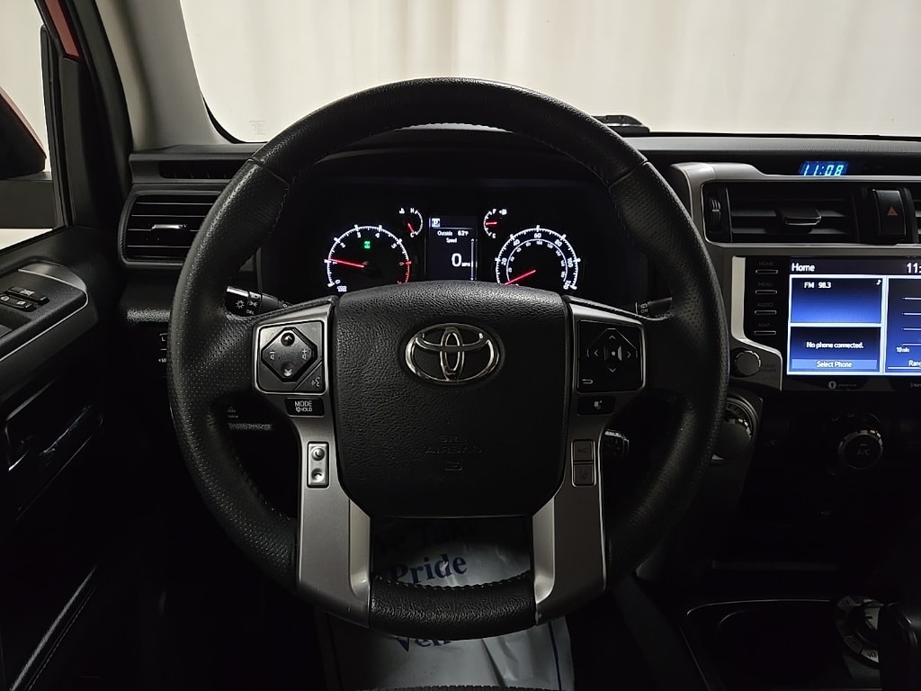 Barcelona Red Metallic 2021 Toyota 4Runner SR5 4WD 5-Speed Automatic with Overdrive 4.0L V6 SMPI DOHC Ford Blue Advantage: Blue Certified Certified, 4WD, Black/Graphite Cloth, 4-Wheel Disc Brakes, AM/FM radio: SiriusXM, Auto High-beam Headlights, Exterior Parking Camera Rear, Front Bucket Seats, 17" x 7.0" 6-Spoke Alloy Wheels, 3.727 Axle Ratio, 8 Speakers, ABS brakes, Air Conditioning, Alloy wheels, Anti-whiplash front head restraints, Apple CarPlay/Android Auto, Brake assist, Bumpers: body-color, Driver door bin, Driver vanity mirror, Dual front impact airbags, Dual front side impact airbags, Electronic Stability Control, Emergency communication system: Safety Connect with 1-year trial, Front anti-roll bar, Front Center Armrest, Front fog lights, Front reading lights, Front wheel independent suspension, Heated door mirrors, Illuminated entry, Knee airbag, Leather Shift Knob, Leather steering wheel, Low Fabric Seat Trim, Low tire pressure warning, Occupant sensing airbag, Outside temperature display, Overhead airbag, Overhead console, Panic alarm, Passenger door bin, Passenger vanity mirror, Power door mirrors, Power driver seat, Power steering, Power windows, Radio: Audio, Rear anti-roll bar, Rear seat center armrest, Rear window defroster, Rear window wiper, Remote keyless entry, Roof rack: rails only, Security system, Speed control, Speed-sensing steering, Split folding rear seat, Spoiler, Steering wheel mounted audio controls, Tachometer, Telescoping steering wheel, Tilt steering wheel, Traction control, Trip computer, Variably intermittent wipers, 4WD, Black/Graphite Cloth, 4-Wheel Disc Brakes, AM/FM radio: SiriusXM, Auto High-beam Headlights, Exterior Parking Camera Rear, Front Bucket Seats.