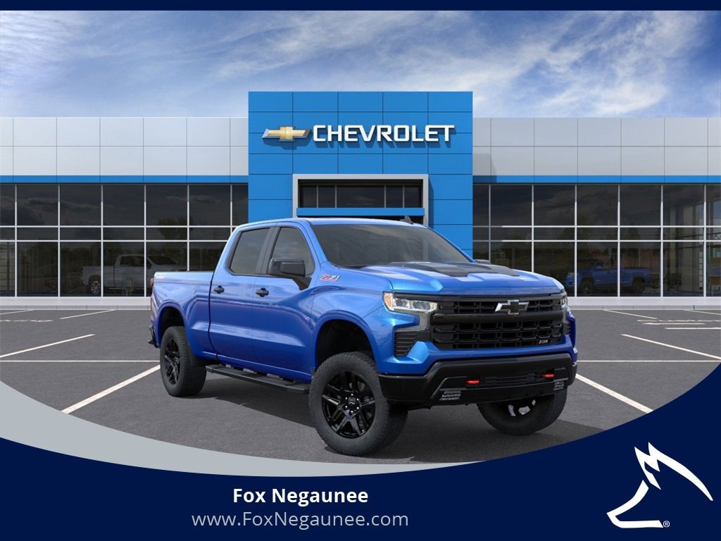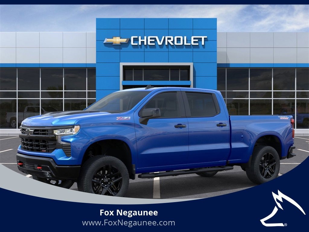 Riptide Blue Metallic 2026 Chevrolet Silverado 1500 LT Trail Boss 4WD 10-Speed Automatic EcoTec3 5.3L V810-Speed Automatic, 4WD, H0y Cloth, 10-Way Power Driver Seat w/Lumbar, 12.3 Multicolor Reconfigurable Digital Display, 120-Volt Bed Mounted Power Outlet, 120-Volt Interior Power Outlet, 220 Amp Alternator, 3.42 Rear Axle Ratio, 4-Wheel Disc Brakes, 40/20/40 Front Split-Bench Seat, 6 Speakers, 6-Speaker Audio System, ABS brakes, Air Conditioning, All-Weather Floor Liner (LPO) (AAK), Alloy wheels, AM/FM radio: SiriusXM with 360L, Apple CarPlay/Android Auto, Auto High-beam Headlights, Auto-Locking Rear Differential, Automatic Emergency Braking, Automatic temperature control, Bluetooth® For Phone, Brake assist, Cloth Seat Trim, Color-Keyed Carpeting Floor Covering, Compass, Convenience Package, Deep-Tinted Glass, Delay-off headlights, Driver door bin, Driver vanity mirror, Dual front impact airbags, Dual front side impact airbags, Dual Rear USB Ports (Charge Only), Dual-Zone Automatic Climate Control, Electric Rear-Window Defogger, Electronic Cruise Control, Electronic Stability Control, Emergency communication system: OnStar, EZ Lift Power Lock & Release Tailgate, Following Distance Indicator, Forward Collision Alert, Front anti-roll bar, Front Center Armrest w/Storage, Front dual zone A/C, Front fog lights, Front LED Fog Lamps, Front Pedestrian Braking, Front reading lights, Front wheel independent suspension, Fully automatic headlights, HD Rear Vision Camera, Heated door mirrors, Heated Driver & Front Outboard Passenger Seats, Heated front seats, Heated Power-Adjustable Outside Mirrors, Heated Steering Wheel, Heated steering wheel, Heavy-Duty Air Filter, High Gloss Black Mirror Caps, Hill Descent Control, Hitch Guidance, Illuminated entry, Inside Rear-View Mirror w/Tilt, Integrated Trailer Brake Controller, IntelliBeam Automatic High Beam On/Off, Keyless Open & Start, Lane Keep Assist w/Lane Departure Warning, LED Cargo Area Lighting, Low tire pressure warning, Manual Tilt/Telescoping Steering Column, Occupant sensing airbag, OnStar Services Capable, Outside temperature display, Overhead airbag, Overhead console, Panic alarm, Passenger door bin, Passenger vanity mirror, Performance Red Recovery Hooks, Power door mirrors, Power driver seat, Power Front Windows w/Driver Express Up/Down, Power Front Windows w/Passenger Express Down, Power Rear Windows w/Express Down, Power steering, Power windows, Premium audio system: Chevrolet Infotainment 3 Premium, Radio data system, Radio: Chevrolet Infotainment 3 Premium System, Rear 60/40 Folding Bench Seat (Folds Up), Rear reading lights, Rear step bumper, Rear window defroster, Remote keyless entry, Remote Vehicle Starter System, Security system, Single Outlet Exhaust, SiriusXM w/360L Trial Subscription, Speed control, Speed-sensing steering, Split folding rear seat, Standard Tailgate, Steering Wheel Audio Controls, Steering wheel mounted audio controls, Suspension Package, Tachometer, Teen Driver, Telescoping steering wheel, Theft Deterrent System (Unauthorized Entry), Tilt steering wheel, Tire Pressure Monitoring System, Traction control, Trailering Package, Trip computer, Variably intermittent wipers, Voltmeter, Wheels: 20 x 9 High Gloss Black Painted Alum, Wi-Fi Hot Spot Capable, Wrapped Steering Wheel, 10-Speed Automatic, 4WD, H0y Cloth.