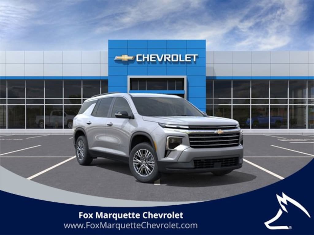 Sterling Gray Metallic 2026 Chevrolet Traverse LT AWD 8-Speed Automatic 2.5L DOHCAWD, 3rd row seats: split-bench, 4-Way Manual Front Passenger Seat Adjuster, 4-Wheel Disc Brakes, 6 Speakers, 6-Speaker Audio System Feature, 8-Way Power Driver Seat Adjuster, ABS brakes, Air Conditioning, Alloy wheels, AM/FM radio: SiriusXM with 360L, Apple CarPlay/Android Auto, Auto High-beam Headlights, Automatic temperature control, Brake assist, Bumpers: body-color, Child-Seat-Sensing Airbag, Compass, Delay-off headlights, Driver door bin, Driver vanity mirror, Dual front impact airbags, Dual front side impact airbags, Electronic Stability Control, Emergency communication system: OnStar, Four wheel independent suspension, Front anti-roll bar, Front Bucket Seats, Front Center Armrest, Front dual zone A/C, Front reading lights, Fully automatic headlights, Heated door mirrors, Heated Driver & Front Passenger Seats, Heated front seats, Heated steering wheel, Illuminated entry, Low tire pressure warning, Navigation System, Occupant sensing airbag, Outside temperature display, Overhead airbag, Overhead console, Panic alarm, Passenger door bin, Passenger vanity mirror, Power door mirrors, Power driver seat, Power Liftgate, Power steering, Power windows, Premium Cloth Seat Trim, Radio data system, Radio: Audio System w/17.7 Diagonal Display, Rear air conditioning, Rear anti-roll bar, Rear reading lights, Rear window defroster, Rear window wiper, Remote keyless entry, Security system, SiriusXM w/360L Trial Subscription, Speed control, Speed-sensing steering, Spoiler, Steering wheel mounted audio controls, Tachometer, Telescoping steering wheel, Tilt steering wheel, Traction control, Trip computer, Turn signal indicator mirrors, Variably intermittent wipers, Voltmeter, Wheels: 18 Grazen Metallic Machined-Face Aluminum, AWD.