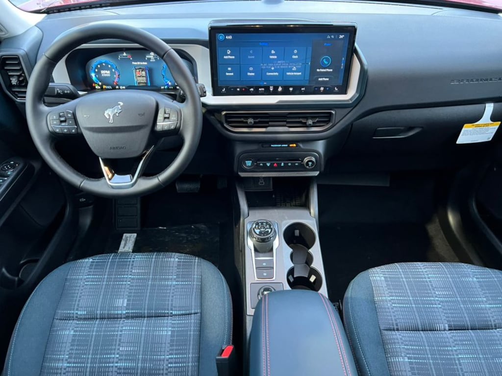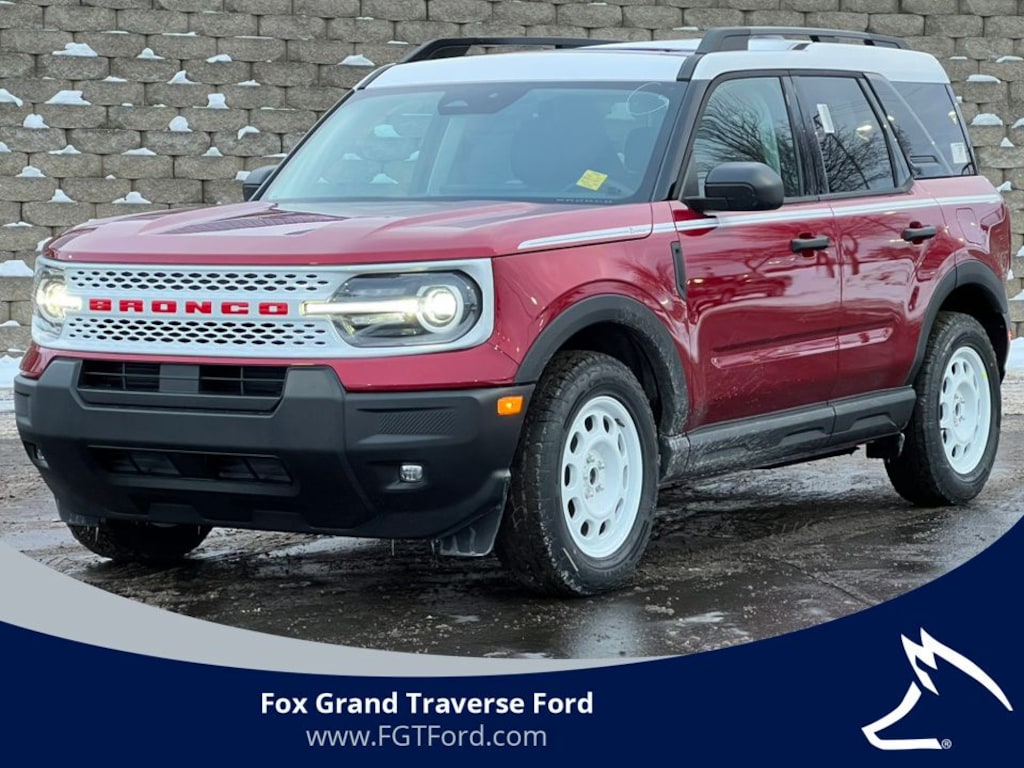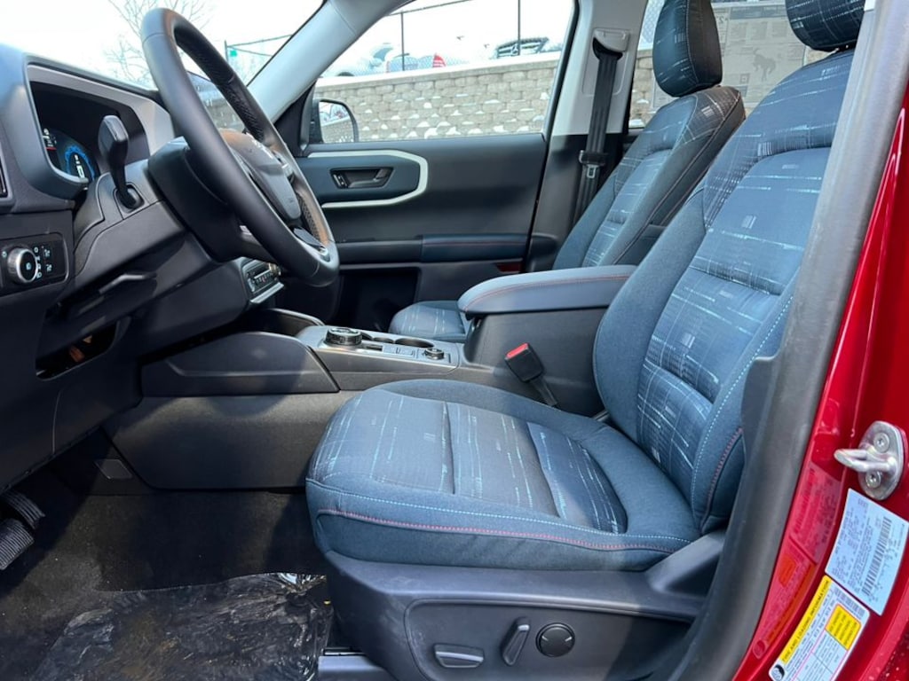 WE DELIVER! BUY ONLINE-TEXT-EMAIL-CHAT-PHONE AND WE WILL DELIVER YOUR NEXT VEHICLE TO YOUR DOOR! FROM OUR SALES FLOOR TO YOUR DOOR! IT'S THAT EASY! Ruby Red Metallic Tinted Clearcoat 2025 Ford Bronco Sport Heritage 4WD 8-Speed Automatic 1.5L EcoBoost 4-Wheel Disc Brakes, 6 Speakers, ABS brakes, Air Conditioning, Alloy wheels, AM/FM radio: SiriusXM, AM/FM Stereo, Auto High-beam Headlights, Automatic temperature control, Brake assist, Compass, Convenience Package, Delay-off headlights, Driver door bin, Driver vanity mirror, Dual front impact airbags, Dual front side impact airbags, Electronic Stability Control, Emergency communication system: SYNC 4 911 Assist, Equipment Group 250A, Four wheel independent suspension, Front & Rear Floor Liners w/o Carpet Mats, Front anti-roll bar, Front Bucket Seats, Front Center Armrest, Front Driver/Passenger Seat Back Map Pockets, Front reading lights, Fully automatic headlights, Heated 8-Way Power Driver's Seat, Heated door mirrors, Illuminated entry, Knee airbag, LED Fog Lamps, Low tire pressure warning, Occupant sensing airbag, Outside temperature display, Overhead airbag, Overhead console, Panic alarm, Passenger door bin, Passenger vanity mirror, Plaid Cloth Front Bucket Seats, Power door mirrors, Power Moonroof, Power steering, Power windows, Premium Wrapped Steering Wheel, Radio data system, Rear anti-roll bar, Rear Parking Sensors, Rear reading lights, Rear seat center armrest, Rear window defroster, Rear window wiper, Remote keyless entry, Security system, SiriusXM, Speed control, Speed-sensing steering, Speed-Sensitive Wipers, Split folding rear seat, Steering wheel mounted audio controls, SYNC 4 w/Enhanced Voice Recognition, Tachometer, Telescoping steering wheel, Tilt steering wheel, Traction control, Trip computer, Universal Garage Door Opener (UGDO), Variably intermittent wipers, Wheels: 17" Oxford White-Painted Aluminum.