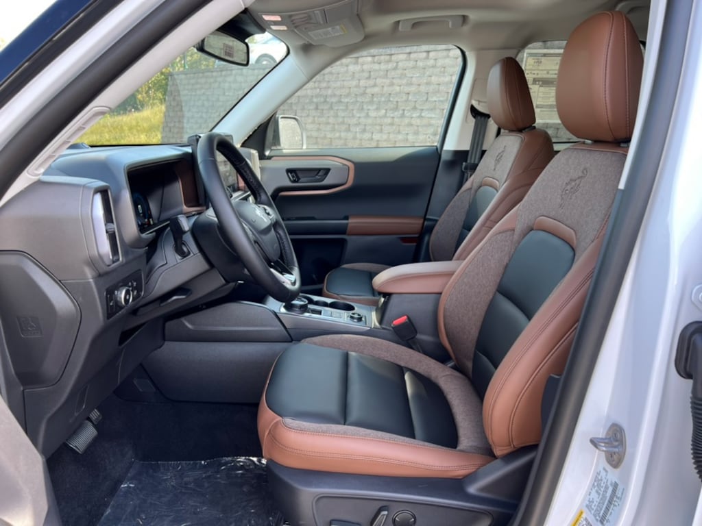 WE DELIVER! BUY ONLINE-TEXT-EMAIL-CHAT-PHONE AND WE WILL DELIVER YOUR NEXT VEHICLE TO YOUR DOOR! FROM OUR SALES FLOOR TO YOUR DOOR! IT'S THAT EASY! Oxford White 2025 Ford Bronco Sport Outer Banks 4WD 8-Speed Automatic 1.5L EcoBoost 4-Wheel Disc Brakes, 6 Speakers, ABS brakes, Air Conditioning, Alloy wheels, AM/FM radio: SiriusXM, AM/FM Stereo, Auto High-beam Headlights, Auto-dimming Rear-View mirror, Automatic temperature control, Brake assist, Compass, Delay-off headlights, Driver door bin, Driver vanity mirror, Dual front impact airbags, Dual front side impact airbags, Electronic Stability Control, Emergency communication system: SYNC 4 911 Assist, Four wheel independent suspension, Front anti-roll bar, Front Bucket Seats, Front Center Armrest, Front Driver/Passenger Seat Back Map Pockets, Front dual zone A/C, Front fog lights, Front reading lights, Fully automatic headlights, Garage door transmitter, Heated door mirrors, Heated front seats, Heated steering wheel, Illuminated entry, Knee airbag, Low tire pressure warning, Memory seat, Occupant sensing airbag, Outside temperature display, Overhead airbag, Overhead console, Panic alarm, Passenger door bin, Passenger vanity mirror, Power door mirrors, Power driver seat, Power passenger seat, Power steering, Power windows, Premium Trimmed Front Bucket Seats w/Ebony/Roast, Radio data system, Rain sensing wipers, Rear anti-roll bar, Rear Parking Sensors, Rear reading lights, Rear seat center armrest, Rear window defroster, Rear window wiper, Remote keyless entry, Security system, SiriusXM, Speed control, Speed-sensing steering, Speed-Sensitive Wipers, Split folding rear seat, Steering wheel mounted audio controls, SYNC 4 w/Enhanced Voice Recognition, Tachometer, Telescoping steering wheel, Tilt steering wheel, Traction control, Trip computer, Variably intermittent wipers, Wheels: 18" Ebony Black-Painted Aluminum.