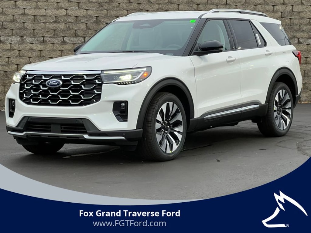WE DELIVER! BUY ONLINE-TEXT-EMAIL-CHAT-PHONE AND WE WILL DELIVER YOUR NEXT VEHICLE TO YOUR DOOR! FROM OUR SALES FLOOR TO YOUR DOOR! IT'S THAT EASY! Star White Metallic Tri-Coat 2026 Ford Explorer Platinum 4WD 10-Speed Automatic 2.3L EcoBoost I-4 4WD, 14 Speakers, 3rd row seats: bench, 4-Wheel Disc Brakes, ABS brakes, ActiveX Trimmed Captain's Chairs, Air Conditioning, Alloy wheels, AM/FM radio: SiriusXM with 360L, Apple CarPlay/Android Auto, Auto High-beam Headlights, Auto-dimming door mirrors, Auto-dimming Rear-View mirror, Automatic temperature control, BlueCruise Equipped (1-Time Purchase), Brake assist, Bumpers: body-color, Compass, Delay-off headlights, Driver door bin, Driver vanity mirror, Dual front impact airbags, Dual front side impact airbags, Electronic Stability Control, Emergency communication system: 911 Assist, Equipment Group 600A Standard Package, Exterior Parking Camera Rear, Four wheel independent suspension, Front anti-roll bar, Front Bucket Seats, Front Center Armrest, Front dual zone A/C, Front fog lights, Front reading lights, Fully automatic headlights, Garage door transmitter, Heated door mirrors, Heated front seats, Heated rear seats, Heated steering wheel, Illuminated entry, Knee airbag, Leather steering wheel, Low tire pressure warning, Lux Leather Package, Memory seat, Navigation System, Occupant sensing airbag, Outside temperature display, Overhead airbag, Overhead console, Panic alarm, Passenger door bin, Passenger vanity mirror, Platinum Badges on Front Row Seats, Power door mirrors, Power driver seat, Power Liftgate, Power passenger seat, Power steering, Power windows, Premium Leather Seating Surfaces Captain's Chairs, Quilting and Stitching on Door Panels, Quilting and Stitching on Seats, Radio data system, Radio: B&O Sound System by Bang & Olufsen with HD, Rain sensing wipers, Rear air conditioning, Rear anti-roll bar, Rear reading lights, Rear window defroster, Rear window wiper, Remote keyless entry, Security system, Speed control, Speed-sensing steering, Speed-Sensitive Wipers, Split folding rear seat, Spoiler, Steering wheel mounted audio controls, Tachometer, Telescoping steering wheel, Tilt steering wheel, Traction control, Trip computer, Turn signal indicator mirrors, Variably intermittent wipers, Ventilated front seats, Wheels: : 21" Bright Machined Aluminum w/Tarnish Dark Pockets, Wheels: 20" Luster Nickel-Painted Aluminum, 4WD.