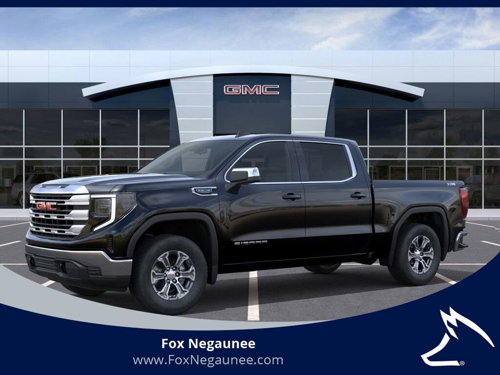 Onyx Black 2026 GMC Sierra 1500 SLE 4WD 10-Speed Automatic EcoTec3 5.3L V810-Speed Automatic, 4WD, Jet Black Cloth, 10-Way Power Driver Seat Adjuster with Lumbar, 120-Volt Bed Mounted Power Outlet, 120-Volt Interior Power Outlet, 2 Charge/Data USB Ports, 2 Type-C Charge-Only Rear USB Ports, 220 Amp Alternator, 3.23 Rear Axle Ratio, 4-Way Manual Passenger Seat Adjuster, 4-Wheel Disc Brakes, 6 Speakers, 6-Speaker Audio System Feature, ABS brakes, Adaptive Cruise Control, Air Conditioning, All-Weather Floor Liner, Alloy wheels, AM/FM radio: SiriusXM with 360L, Apple CarPlay/Android Auto, Auto High-beam Headlights, Auto-Locking Rear Differential, Automatic Emergency Braking, Automatic temperature control, Auxiliary External Transmission Oil Cooler, Brake assist, Buckle to Drive, Bumpers: chrome, Chrome Header with Medium Silver Grille Insert Bars, Cloth Seat Trim, Color-Keyed Carpeting Floor Covering, Compass, Deep-Tinted Glass, Delay-off headlights, Driver door bin, Driver vanity mirror, Dual Exhaust System, Dual front impact airbags, Dual front side impact airbags, Dual-Zone Automatic Climate Control, Electric Rear-Window Defogger, Electronic Stability Control, Emergency communication system: OnStar, External Engine Oil Cooling, Following Distance Indicator, Forward Collision Alert, Front 40/20/40 Split-Bench Seat, Front and Rear Black Molded Splash Guards, Front anti-roll bar, Front Center Armrest w/Storage, Front dual zone A/C, Front Frame-Mounted Black Recovery Hooks, Front License Plate Kit, Front Pedestrian Braking, Front reading lights, Front Rubberized-Vinyl Floor Mats, Front wheel independent suspension, Fully automatic headlights, HD Rear Vision Camera, Heated door mirrors, Heated Driver and Front Outboard Passenger Seating, Heated front seats, Heated steering wheel, Heavy-Duty Air Filter, Hill Descent Control, Hitch Guidance, Hitch View, Illuminated entry, in-Vehicle Trailering System App, Integrated Trailer Brake Controller, IntelliBeam Automatic High Beam on/Off, Keyless Open and Start, Lane Keep Assist with Lane Departure Warning, LED Cargo Area Lighting, Low tire pressure warning, Manual Tilt-Wheel and Telescoping Steering Column, Navigation System, Occupant sensing airbag, Off-Road Suspension, OnStar Services Capable, Outside temperature display, Overhead airbag, Overhead console, Panic alarm, Passenger door bin, Passenger vanity mirror, Power Door Locks, Power door mirrors, Power driver seat, Power Front Windows with Driver Express Up/Down, Power Front Windows with Passenger Express Down, Power Rear Windows with Express Down, Power Sliding Rear Window with Rear Defogger, Power steering, Power windows, Preferred Equipment Group 3SA, Preferred Package, Push Button Start, Radio data system, Radio: Premium GMC Infotainment Audio System, Rear reading lights, Rear Rubberized-Vinyl Floor Mats, Rear step bumper, Rear Wheelhouse Liners, Rear window defroster, Remote keyless entry, Remote Start Package, Remote Vehicle Starter System, Security system, SiriusXM with 360L Trial Subscription, SLE Convenience Package, SLE Value Package, Snow Plow Prep Package, Speed control, Speed-sensing steering, Split folding rear seat, Spray-on Pickup Bedliner with GMC Logo, Standard Suspension Package, Steering Wheel Audio Controls, Steering wheel mounted audio controls, Tachometer, Telescoping steering wheel, Theft Deterrent System (unauthorized Entry), Tilt steering wheel, Traction control, Trailering Package, Trip computer, Universal Home Remote, Variably intermittent wipers, Voltmeter, Wheels: 17 x 8 Bright Silver Painted Aluminum, Wheels: 18 x 8.5 6-Spoke Machined Aluminum, Wi-Fi Hotspot Capable, Wireless Apple CarPlay/Wireless Android Auto, X31 Hard Badge, X31 Off-Road Package, 10-Speed Automatic, 4WD, Jet Black Cloth.Recent Arrival!