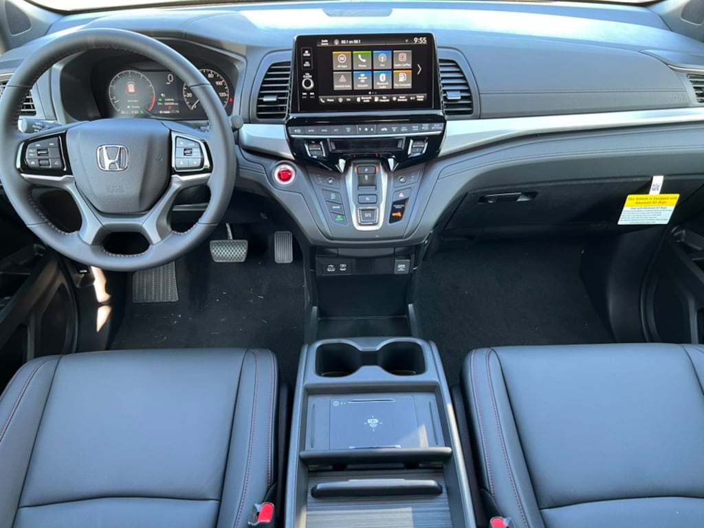 Crystal Black Pearl 2025 Honda Odyssey Sport-L FWD 10-Speed Automatic 3.5L V6 SOHC i-VTEC 24V 3rd Row Seats, 4-Wheel Disc Brakes, 7 Speakers, ABS Brakes, Adaptive Cruise Control: Adaptive Cruise Control (ACC) with Low-Speed Follow, Air Conditioning, Alloy wheels, AM/FM Radio, Available Sirius XM Radio, Anti-whiplash front head restraints, Apple CarPlay/Android Auto, Auto High-beam Headlights, Auto-dimming Rear-View mirror, Automatic temperature control, Blind Spot Information (BSI) System warning, Brake Assist, Bumpers: body-color, Delay-off headlights, Driver door bin, Driver vanity mirror, Driver's Seat Mounted Armrest, Dual front impact airbags, Dual front side impact airbags, Dual-Climate Control, Electronic Stability Control, Four wheel independent suspension, Front anti-roll bar, Front Bucket Seats, Front Fog Lights, Front reading lights, Fully Automatic Headlights, Garage door transmitter: HomeLink, Heated Front Bucket Seats, Heated Front Seats, Heated Sideview Mirrors, Illuminated Entry, Knee airbag, Lane departure: Lane Keeping Assist System (LKAS) active, Leather steering wheel, Leather Trimmed Seats, Low tire pressure warning, Memory seat, Occupant sensing airbag, Outside Temperature Display, Overhead airbag, Overhead Console, Panic Alarm, Passenger door bin, Passenger seat mounted armrest, Passenger vanity mirror, Power Adjusting Driver Seat, Power Liftgate, Power Moonroof, Power passenger seat, Power Sideview Mirrors, Power Steering, Power Windows, Radio data system, Radio: 160-Watt AM/FM/HD/SiriusXM Audio System, Rear air conditioning, Rear anti-roll bar, Rear reading lights, Rear seat center armrest, Rear Spoiler, Rear Window Wiper, Rear-View Camera, Rear/Front Window Defroster, Reclining 3rd row seat, Remote Keyless Entry, Security System, Speed Control, Speed-Sensing Steering, Speed-Sensitive Wipers, Split Folding Rear Seat, Steering Wheel Mounted Controls, Tachometer, Telescoping steering wheel, Tilt steering wheel, Traction Control, Trip computer, Turn signal indicator mirrors, Variably intermittent wipers, Wheels: 19" Gloss Black Alloy.