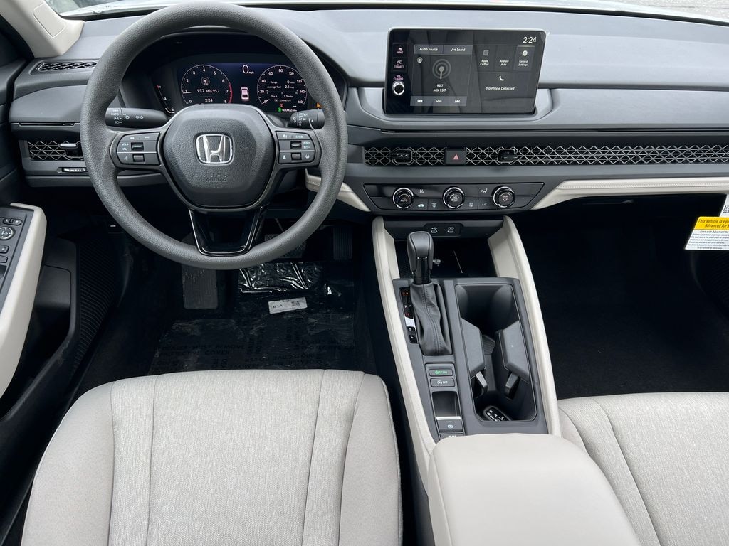 Platinum White Pearl 2026 Honda Accord LX FWD CVT 1.5T I4 DOHC 16V Turbocharged VTEC 4 Speakers, 4-Wheel Disc Brakes, ABS Brakes, Adaptive Cruise Control: Adaptive Cruise Control (ACC) with Low-Speed Follow, Air Conditioning, Alloy wheels, AM/FM Radio, Apple CarPlay/Android Auto, Auto High-beam Headlights, Automatic temperature control, Brake Assist, Bumpers: body-color, Compass, Delay-off headlights, Driver door bin, Driver vanity mirror, Dual front impact airbags, Dual front side impact airbags, Electronic Stability Control, Emergency communication system: HondaLink, Fabric Seat Trim, Four wheel independent suspension, Front anti-roll bar, Front Bucket Seats, Front Center Armrest, Front reading lights, Fully Automatic Headlights, Illuminated Entry, Knee airbag, Lane departure: Lane Keeping Assist System (LKAS) active, Low tire pressure warning, Occupant sensing airbag, Outside Temperature Display, Overhead airbag, Overhead Console, Panic Alarm, Passenger door bin, Passenger vanity mirror, Power Sideview Mirrors, Power Steering, Power Windows, Radio data system, Radio: 160-Watt Audio System, Rear anti-roll bar, Rear reading lights, Rear seat center armrest, Rear side impact airbag, Rear-View Camera, Rear/Front Window Defroster, Remote Keyless Entry, Security System, Speed Control, Speed-Sensing Steering, Speed-Sensitive Wipers, Steering Wheel Mounted Controls, Tachometer, Telescoping steering wheel, Tilt steering wheel, Traction Control, Trip computer, Variably intermittent wipers, Wheels: 17" x 7.5J Blade Silver.