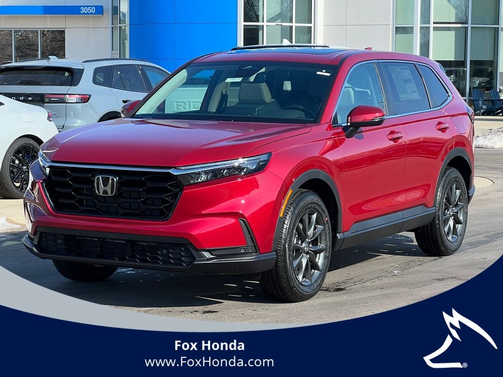 Radiant Red Metallic 2026 Honda CR-V EX-L AWD CVT 1.5L I4 DOHC 16V 4-Wheel Disc Brakes, 8 Speakers, ABS Brakes, Adaptive Cruise Control: Adaptive Cruise Control (ACC) with Low-Speed Follow, Air Conditioning, Alloy wheels, AM/FM Radio, Apple CarPlay/Android Auto, Auto High-beam Headlights, Auto-dimming Rear-View mirror, Automatic temperature control, Blind Spot Information (BSI) System warning, Brake Assist, Bumpers: body-color, Compass, Delay-off headlights, Driver door bin, Driver vanity mirror, Dual front impact airbags, Dual front side impact airbags, Dual-Climate Control, Electronic Stability Control, Four wheel independent suspension, Front anti-roll bar, Front Bucket Seats, Front Center Armrest, Front reading lights, Fully Automatic Headlights, Heated Front Bucket Seats, Heated Front Seats, Heated Sideview Mirrors, Illuminated Entry, Knee airbag, Leather Seat Trim, Leather Shift Knob, Leather steering wheel, Low tire pressure warning, Memory seat, Occupant sensing airbag, Outside Temperature Display, Overhead airbag, Overhead Console, Panic Alarm, Passenger door bin, Passenger vanity mirror, Power Adjusting Driver Seat, Power Liftgate, Power Moonroof, Power passenger seat, Power Sideview Mirrors, Power Steering, Power Windows, Radio data system, Radio: 320-Watt AM/FM Audio System, Rear anti-roll bar, Rear reading lights, Rear seat center armrest, Rear side impact airbag, Rear Spoiler, Rear Window Wiper, Rear-View Camera, Rear/Front Window Defroster, Remote Keyless Entry, Security System, Speed Control, Speed-Sensing Steering, Speed-Sensitive Wipers, Split Folding Rear Seat, Steering Wheel Mounted Controls, Tachometer, Telescoping steering wheel, Tilt steering wheel, Traction Control, Trip computer, Turn signal indicator mirrors, Variably intermittent wipers, Wheels: 18" Shark Grey.