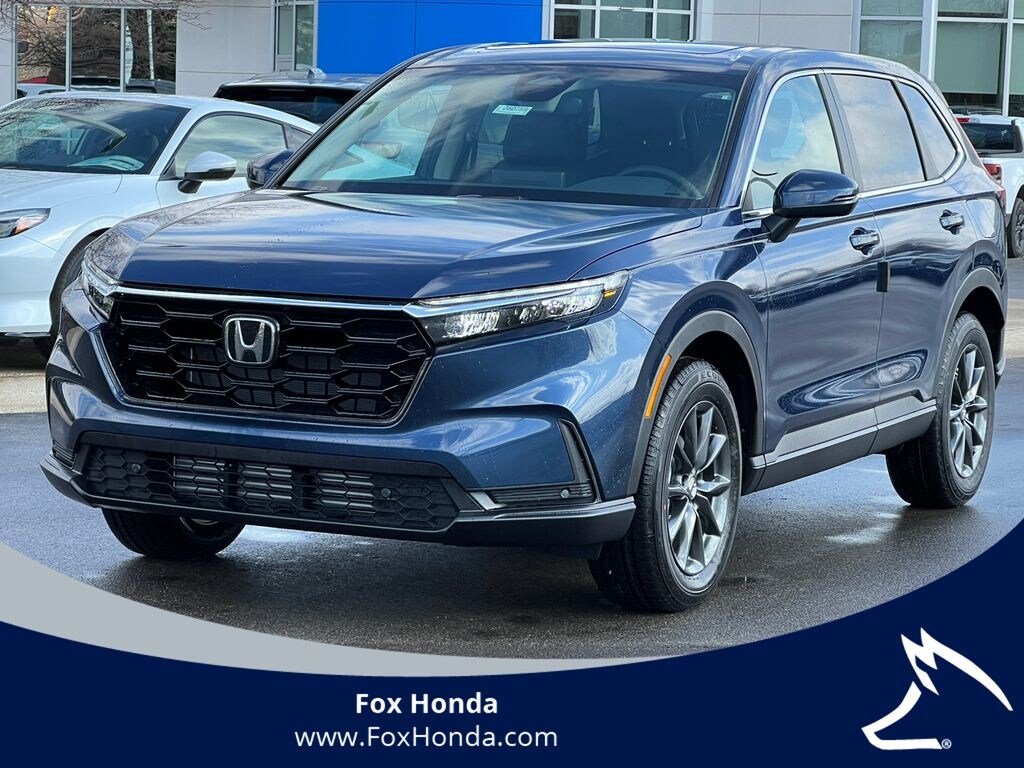 Canyon River Blue Metallic 2026 Honda CR-V EX-L AWD CVT 1.5L I4 DOHC 16V 4-Wheel Disc Brakes, 8 Speakers, ABS Brakes, Adaptive Cruise Control: Adaptive Cruise Control (ACC) with Low-Speed Follow, Air Conditioning, Alloy wheels, AM/FM Radio, Apple CarPlay/Android Auto, Auto High-beam Headlights, Auto-dimming Rear-View mirror, Automatic temperature control, Blind Spot Information (BSI) System warning, Brake Assist, Bumpers: body-color, Compass, Delay-off headlights, Driver door bin, Driver vanity mirror, Dual front impact airbags, Dual front side impact airbags, Dual-Climate Control, Electronic Stability Control, Four wheel independent suspension, Front anti-roll bar, Front Bucket Seats, Front Center Armrest, Front reading lights, Fully Automatic Headlights, Heated Front Bucket Seats, Heated Front Seats, Heated Sideview Mirrors, Illuminated Entry, Knee airbag, Leather Seat Trim, Leather Shift Knob, Leather steering wheel, Low tire pressure warning, Memory seat, Occupant sensing airbag, Outside Temperature Display, Overhead airbag, Overhead Console, Panic Alarm, Passenger door bin, Passenger vanity mirror, Power Adjusting Driver Seat, Power Liftgate, Power Moonroof, Power passenger seat, Power Sideview Mirrors, Power Steering, Power Windows, Radio data system, Radio: 320-Watt AM/FM Audio System, Rear anti-roll bar, Rear reading lights, Rear seat center armrest, Rear side impact airbag, Rear Spoiler, Rear Window Wiper, Rear-View Camera, Rear/Front Window Defroster, Remote Keyless Entry, Security System, Speed Control, Speed-Sensing Steering, Speed-Sensitive Wipers, Split Folding Rear Seat, Steering Wheel Mounted Controls, Tachometer, Telescoping steering wheel, Tilt steering wheel, Traction Control, Trip computer, Turn signal indicator mirrors, Variably intermittent wipers, Wheels: 18" Shark Grey.