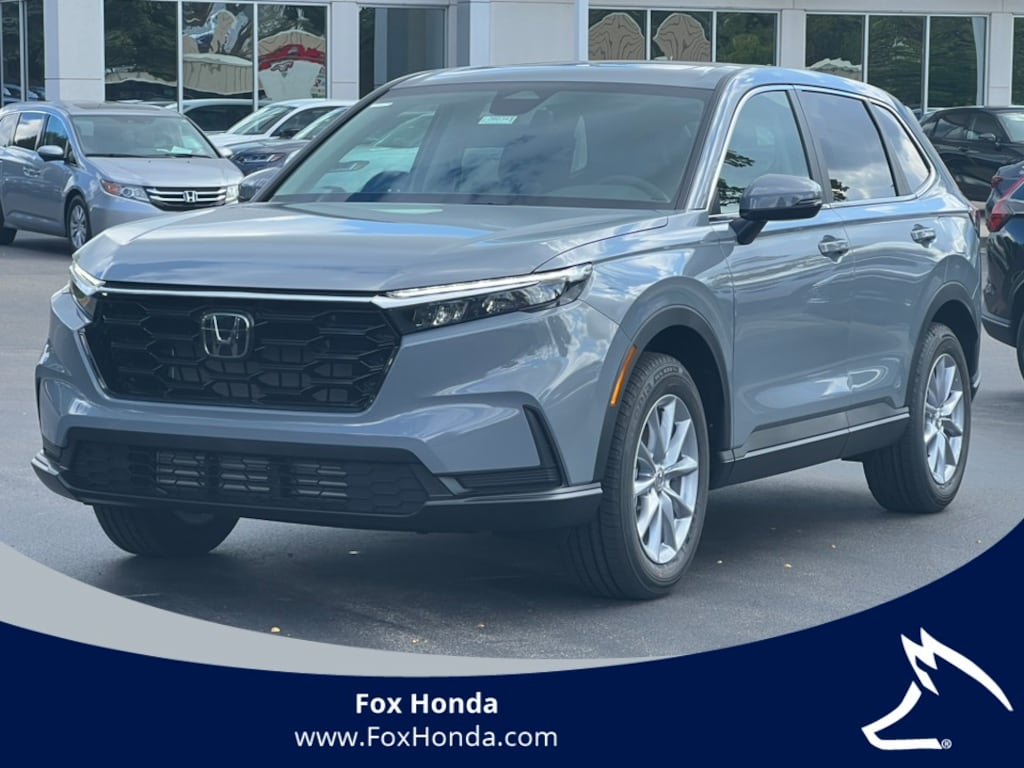 Urban Gray Pearl 2026 Honda CR-V EX AWD CVT 1.5L I4 DOHC 16V 4-Wheel Disc Brakes, 6 Speakers, ABS Brakes, Adaptive Cruise Control: Adaptive Cruise Control (ACC) with Low-Speed Follow, Air Conditioning, Alloy wheels, Apple CarPlay/Android Auto, Auto High-beam Headlights, Automatic temperature control, Blind Spot Information (BSI) System warning, Brake Assist, Bumpers: body-color, Cloth Seat Trim, Compass, Delay-off headlights, Driver door bin, Driver vanity mirror, Dual front impact airbags, Dual front side impact airbags, Dual-Climate Control, Electronic Stability Control, Four wheel independent suspension, Front anti-roll bar, Front Bucket Seats, Front Center Armrest, Front reading lights, Fully Automatic Headlights, Heated Front Bucket Seats, Heated Front Seats, Heated Sideview Mirrors, Illuminated Entry, Knee airbag, Low tire pressure warning, Occupant sensing airbag, Outside Temperature Display, Overhead airbag, Overhead Console, Panic Alarm, Passenger door bin, Passenger vanity mirror, Power Adjusting Driver Seat, Power Moonroof, Power Sideview Mirrors, Power Steering, Power Windows, Radio data system, Radio: 240-Watt AM/FM Audio System, Rear anti-roll bar, Rear reading lights, Rear seat center armrest, Rear side impact airbag, Rear Spoiler, Rear Window Wiper, Rear-View Camera, Rear/Front Window Defroster, Remote Keyless Entry, Security System, Speed Control, Speed-Sensing Steering, Speed-Sensitive Wipers, Split Folding Rear Seat, Steering Wheel Mounted Controls, Tachometer, Telescoping steering wheel, Tilt steering wheel, Traction Control, Trip computer, Turn signal indicator mirrors, Variably intermittent wipers, Wheels: 18" Sparkle Silver.