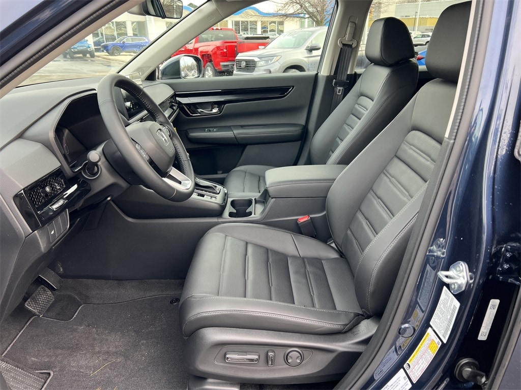 Canyon River Blue Metallic 2026 Honda CR-V EX-L AWD CVT 1.5L I4 DOHC 16V 4-Wheel Disc Brakes, 8 Speakers, ABS Brakes, Adaptive Cruise Control: Adaptive Cruise Control (ACC) with Low-Speed Follow, Air Conditioning, Alloy wheels, Apple CarPlay/Android Auto, Auto High-beam Headlights, Auto-dimming Rear-View mirror, Automatic temperature control, Blind Spot Information (BSI) System warning, Brake Assist, Bumpers: body-color, Compass, Delay-off headlights, Driver door bin, Driver vanity mirror, Dual front impact airbags, Dual front side impact airbags, Dual-Climate Control, Electronic Stability Control, Four wheel independent suspension, Front anti-roll bar, Front Bucket Seats, Front Center Armrest, Front reading lights, Fully Automatic Headlights, Heated Front Bucket Seats, Heated Front Seats, Heated Sideview Mirrors, Illuminated Entry, Knee airbag, Leather Seat Trim, Leather Shift Knob, Leather steering wheel, Low tire pressure warning, Memory seat, Occupant sensing airbag, Outside Temperature Display, Overhead airbag, Overhead Console, Panic Alarm, Passenger door bin, Passenger vanity mirror, Power Adjusting Driver Seat, Power Liftgate, Power Moonroof, Power passenger seat, Power Sideview Mirrors, Power Steering, Power Windows, Radio data system, Radio: 320-Watt AM/FM Audio System, Rear anti-roll bar, Rear reading lights, Rear seat center armrest, Rear side impact airbag, Rear Spoiler, Rear Window Wiper, Rear-View Camera, Rear/Front Window Defroster, Remote Keyless Entry, Security System, Speed Control, Speed-Sensing Steering, Speed-Sensitive Wipers, Split Folding Rear Seat, Steering Wheel Mounted Controls, Tachometer, Telescoping steering wheel, Tilt steering wheel, Traction Control, Trip computer, Turn signal indicator mirrors, Variably intermittent wipers, Wheels: 18" Shark Gray.