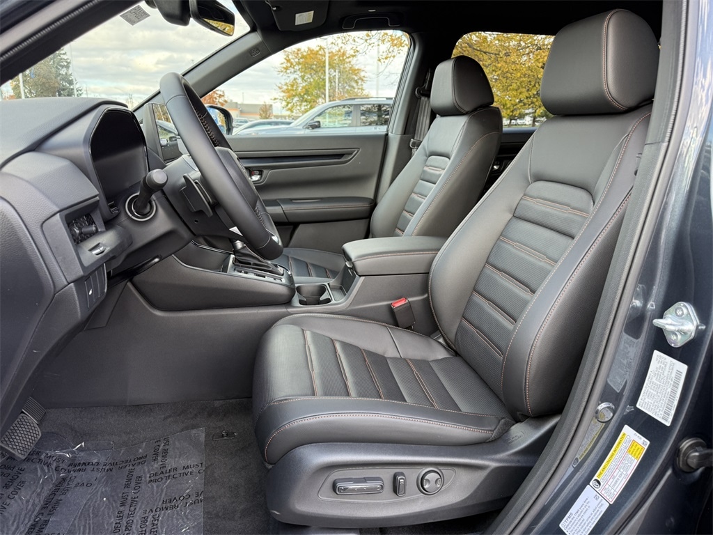 Meteorite Gray Metallic 2026 Honda CR-V Hybrid Sport-L AWD eCVT 2.0L I4 DOHC 16V 4-Wheel Disc Brakes, 8 Speakers, ABS Brakes, Adaptive Cruise Control: Adaptive Cruise Control (ACC) with Low-Speed Follow, Air Conditioning, Alloy wheels, Apple CarPlay/Android Auto, Auto High-beam Headlights, Auto-dimming Rear-View mirror, Automatic temperature control, Blind Spot Information (BSI) System warning, Brake Assist, Bumpers: body-color, Compass, Delay-off headlights, Driver door bin, Driver vanity mirror, Dual front impact airbags, Dual front side impact airbags, Dual-Climate Control, Electronic Stability Control, Four wheel independent suspension, Front anti-roll bar, Front Bucket Seats, Front Center Armrest, Front reading lights, Fully Automatic Headlights, Heated Front Bucket Seats, Heated Front Seats, Heated Sideview Mirrors, Illuminated Entry, Knee airbag, Leather Seat Trim, Leather Shift Knob, Leather steering wheel, Low tire pressure warning, Memory seat, Occupant sensing airbag, Outside Temperature Display, Overhead airbag, Overhead Console, Panic Alarm, Passenger door bin, Passenger vanity mirror, Power Adjusting Driver Seat, Power Liftgate, Power Moonroof, Power passenger seat, Power Sideview Mirrors, Power Steering, Power Windows, Radio data system, Radio: 320-Watt AM/FM Audio System, Rear anti-roll bar, Rear reading lights, Rear seat center armrest, Rear side impact airbag, Rear Spoiler, Rear Window Wiper, Rear-View Camera, Rear/Front Window Defroster, Remote Keyless Entry, Security System, Speed Control, Speed-Sensing Steering, Speed-Sensitive Wipers, Split Folding Rear Seat, Steering Wheel Mounted Controls, Telescoping steering wheel, Tilt steering wheel, Traction Control, Trip computer, Turn signal indicator mirrors, Variably intermittent wipers, Wheels: 18" Berlina Black.