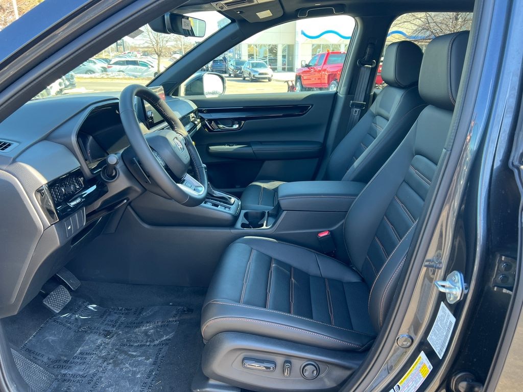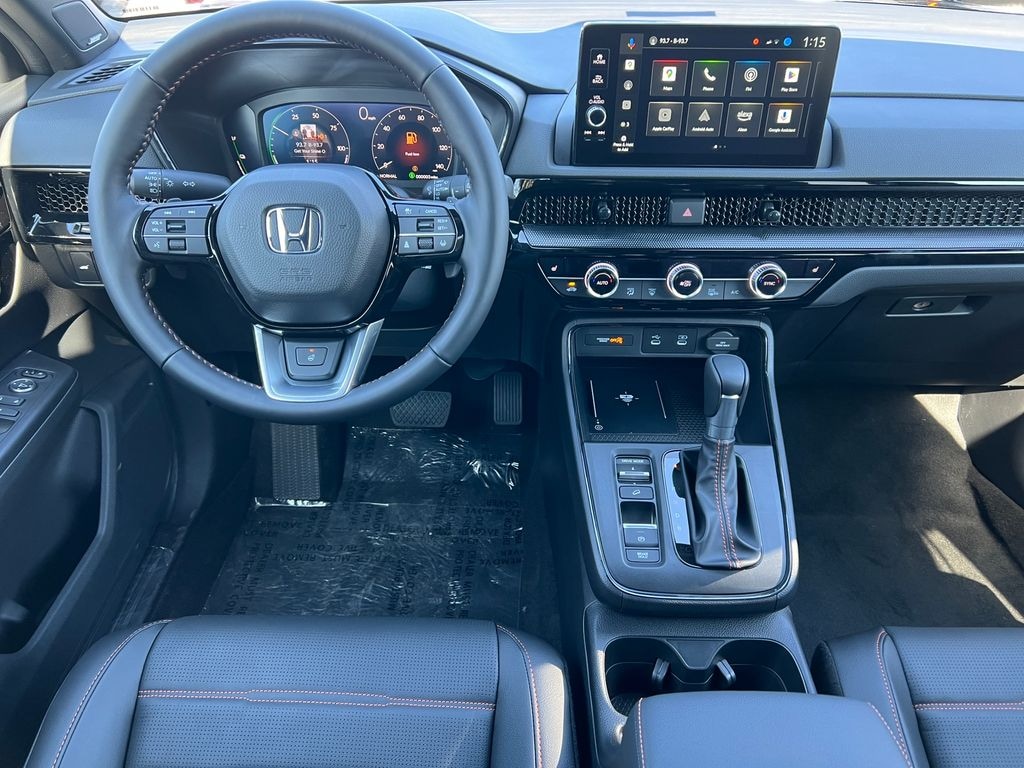 Meteorite Gray Metallic 2026 Honda CR-V Hybrid Sport Touring AWD eCVT 2.0L I4 DOHC 16V 12 Speakers, 4-Wheel Disc Brakes, ABS Brakes, Adaptive Cruise Control: Adaptive Cruise Control (ACC) with Low-Speed Follow, Air Conditioning, Alloy wheels, AM/FM Radio, Apple CarPlay/Android Auto, Auto High-beam Headlights, Auto-dimming Rear-View mirror, Automatic temperature control, Blind Spot Information (BSI) System warning, Bose Premium Sound System, Brake Assist, Bumpers: body-color, Compass, Delay-off headlights, Driver door bin, Driver vanity mirror, Dual front impact airbags, Dual front side impact airbags, Dual-Climate Control, Electronic Stability Control, Four wheel independent suspension, Front anti-roll bar, Front Bucket Seats, Front Center Armrest, Front reading lights, Fully Automatic Headlights, Heated Front Bucket Seats, Heated Front Seats, Heated Sideview Mirrors, Heated Steering Wheel, Illuminated Entry, Knee airbag, Leather Seat Trim, Leather Shift Knob, Leather steering wheel, Low tire pressure warning, Memory seat, Navigation system: Google Maps, Occupant sensing airbag, Outside Temperature Display, Overhead airbag, Overhead Console, Panic Alarm, Passenger door bin, Passenger vanity mirror, Power Adjusting Driver Seat, Power Liftgate, Power Moonroof, Power passenger seat, Power Sideview Mirrors, Power Steering, Power Windows, Radio data system, Rain Sensing Wipers, Rear anti-roll bar, Rear reading lights, Rear seat center armrest, Rear side impact airbag, Rear Spoiler, Rear Window Wiper, Rear-View Camera, Rear/Front Window Defroster, Remote Keyless Entry, Security System, Speed Control, Speed-Sensing Steering, Speed-Sensitive Wipers, Split Folding Rear Seat, Steering Wheel Mounted Controls, Telescoping steering wheel, Tilt steering wheel, Traction Control, Trip computer, Turn signal indicator mirrors, Variably intermittent wipers, Wheels: 19" Berlina Black.