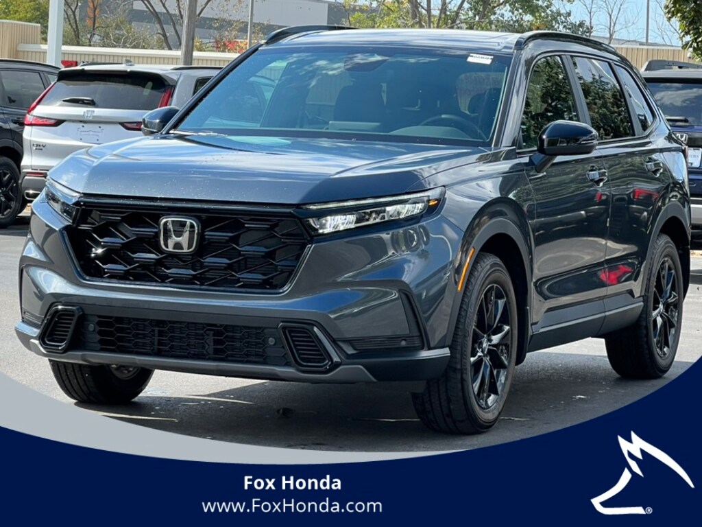 Meteorite Gray Metallic 2026 Honda CR-V Hybrid Sport-L AWD eCVT 2.0L I4 DOHC 16V 4-Wheel Disc Brakes, 8 Speakers, ABS Brakes, Adaptive Cruise Control: Adaptive Cruise Control (ACC) with Low-Speed Follow, Air Conditioning, Alloy wheels, Apple CarPlay/Android Auto, Auto High-beam Headlights, Auto-dimming Rear-View mirror, Automatic temperature control, Blind Spot Information (BSI) System warning, Brake Assist, Bumpers: body-color, Compass, Delay-off headlights, Driver door bin, Driver vanity mirror, Dual front impact airbags, Dual front side impact airbags, Dual-Climate Control, Electronic Stability Control, Four wheel independent suspension, Front anti-roll bar, Front Bucket Seats, Front Center Armrest, Front reading lights, Fully Automatic Headlights, Heated Front Bucket Seats, Heated Front Seats, Heated Sideview Mirrors, Illuminated Entry, Knee airbag, Leather Seat Trim, Leather Shift Knob, Leather steering wheel, Low tire pressure warning, Memory seat, Occupant sensing airbag, Outside Temperature Display, Overhead airbag, Overhead Console, Panic Alarm, Passenger door bin, Passenger vanity mirror, Power Adjusting Driver Seat, Power Liftgate, Power Moonroof, Power passenger seat, Power Sideview Mirrors, Power Steering, Power Windows, Radio data system, Radio: 320-Watt AM/FM Audio System, Rear anti-roll bar, Rear reading lights, Rear seat center armrest, Rear side impact airbag, Rear Spoiler, Rear Window Wiper, Rear-View Camera, Rear/Front Window Defroster, Remote Keyless Entry, Security System, Speed Control, Speed-Sensing Steering, Speed-Sensitive Wipers, Split Folding Rear Seat, Steering Wheel Mounted Controls, Telescoping steering wheel, Tilt steering wheel, Traction Control, Trip computer, Turn signal indicator mirrors, Variably intermittent wipers, Wheels: 18" Berlina Black.