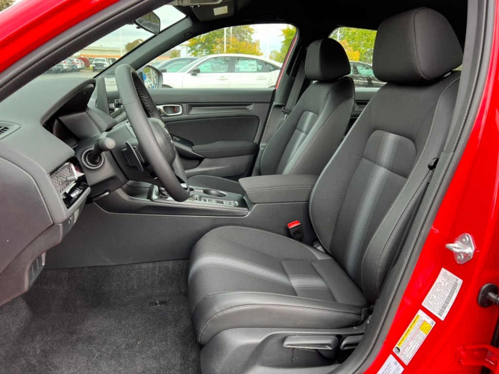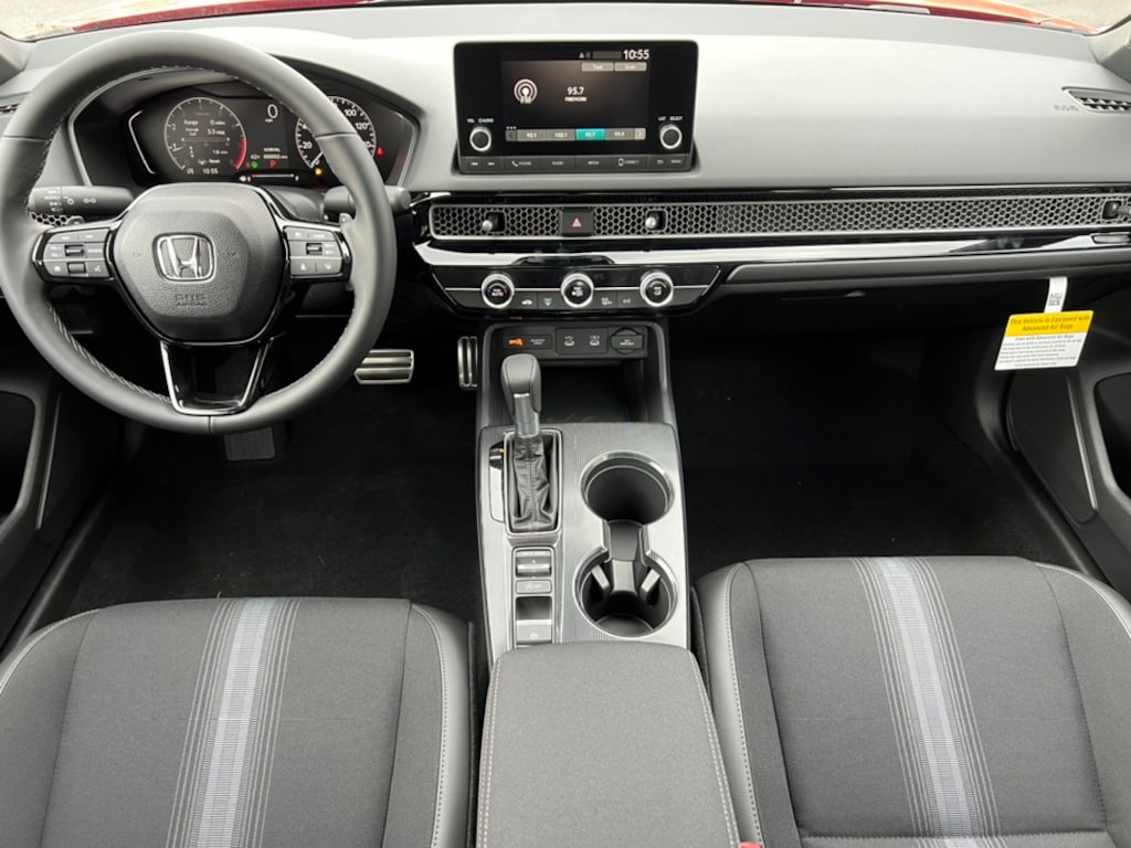 Rallye Red 2026 Honda Civic Sport FWD CVT 2.0L I4 DOHC 16V 4-Wheel Disc Brakes, 8 Speakers, ABS Brakes, Adaptive Cruise Control: Adaptive Cruise Control (ACC) with Low-Speed Follow, Air Conditioning, Alloy wheels, AM/FM Radio, Apple CarPlay/Android Auto, Auto High-beam Headlights, Automatic temperature control, Blind Spot Information (BSI) System warning, Brake Assist, Bumpers: body-color, Cloth/Leatherette Seating Surfaces, Delay-off headlights, Driver door bin, Driver vanity mirror, Dual front impact airbags, Dual front side impact airbags, Electronic Stability Control, Emergency communication system: HondaLink, Four wheel independent suspension, Front anti-roll bar, Front Bucket Seats, Front Center Armrest, Front reading lights, Fully Automatic Headlights, Heated Sideview Mirrors, Illuminated Entry, Knee airbag, Leather Shift Knob, Leather steering wheel, Low tire pressure warning, Occupant sensing airbag, Outside Temperature Display, Overhead airbag, Panic Alarm, Passenger door bin, Passenger vanity mirror, Power Sideview Mirrors, Power Steering, Power Windows, Radio data system, Radio: 180-Watt Audio System, Rear anti-roll bar, Rear seat center armrest, Rear side impact airbag, Rear-View Camera, Rear/Front Window Defroster, Remote Keyless Entry, Security System, Speed Control, Speed-Sensing Steering, Split Folding Rear Seat, Steering Wheel Mounted Controls, Tachometer, Telescoping steering wheel, Tilt steering wheel, Traction Control, Trip computer, Wheels: 18" Gloss Black Alloy.