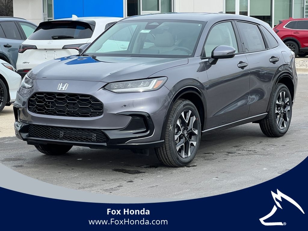 Modern Steel Metallic 2026 Honda HR-V EX-L AWD CVT 2.0L I4 DOHC 16V i-VTEC 18" Machine-Finished Alloy Wheels, 4-Wheel Disc Brakes, 8 Speakers, ABS Brakes, Adaptive Cruise Control: Adaptive Cruise Control (ACC) with Low-Speed Follow, Air Conditioning, Alloy wheels, AM/FM Radio, Apple CarPlay/Android Auto, Auto High-beam Headlights, Auto-dimming Rear-View mirror, Automatic temperature control, Blind Spot Information (BSI) System warning, Brake Assist, Bumpers: body-color, Compass, Delay-off headlights, Driver door bin, Driver vanity mirror, Dual front impact airbags, Dual front side impact airbags, Dual-Climate Control, Electronic Stability Control, Four wheel independent suspension, Front anti-roll bar, Front Bucket Seats, Front Center Armrest, Front reading lights, Fully Automatic Headlights, Heated Front Bucket Seats, Heated Front Seats, Heated Sideview Mirrors, Illuminated Entry, Knee airbag, Leather Shift Knob, Leather steering wheel, Leather-Trimmed Seats, Low tire pressure warning, Occupant sensing airbag, Outside Temperature Display, Overhead airbag, Panic Alarm, Passenger door bin, Passenger vanity mirror, Power Adjusting Driver Seat, Power Moonroof, Power Sideview Mirrors, Power Steering, Power Windows, Radio data system, Radio: 180-Watt Audio System with 8 Speakers, Rear anti-roll bar, Rear reading lights, Rear side impact airbag, Rear Spoiler, Rear Window Wiper, Rear-View Camera, Rear/Front Window Defroster, Remote Keyless Entry, Security System, Speed Control, Speed-Sensing Steering, Split Folding Rear Seat, Steering Wheel Mounted Controls, Tachometer, Telescoping steering wheel, Tilt steering wheel, Traction Control, Trip computer, Turn signal indicator mirrors, Variably intermittent wipers.
