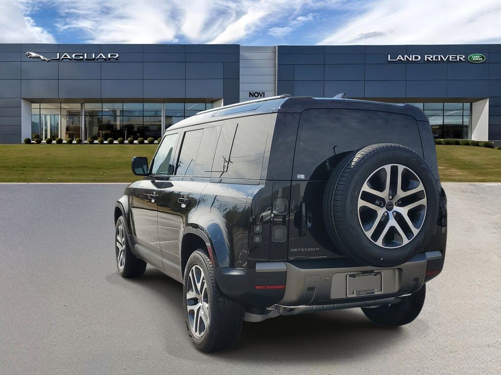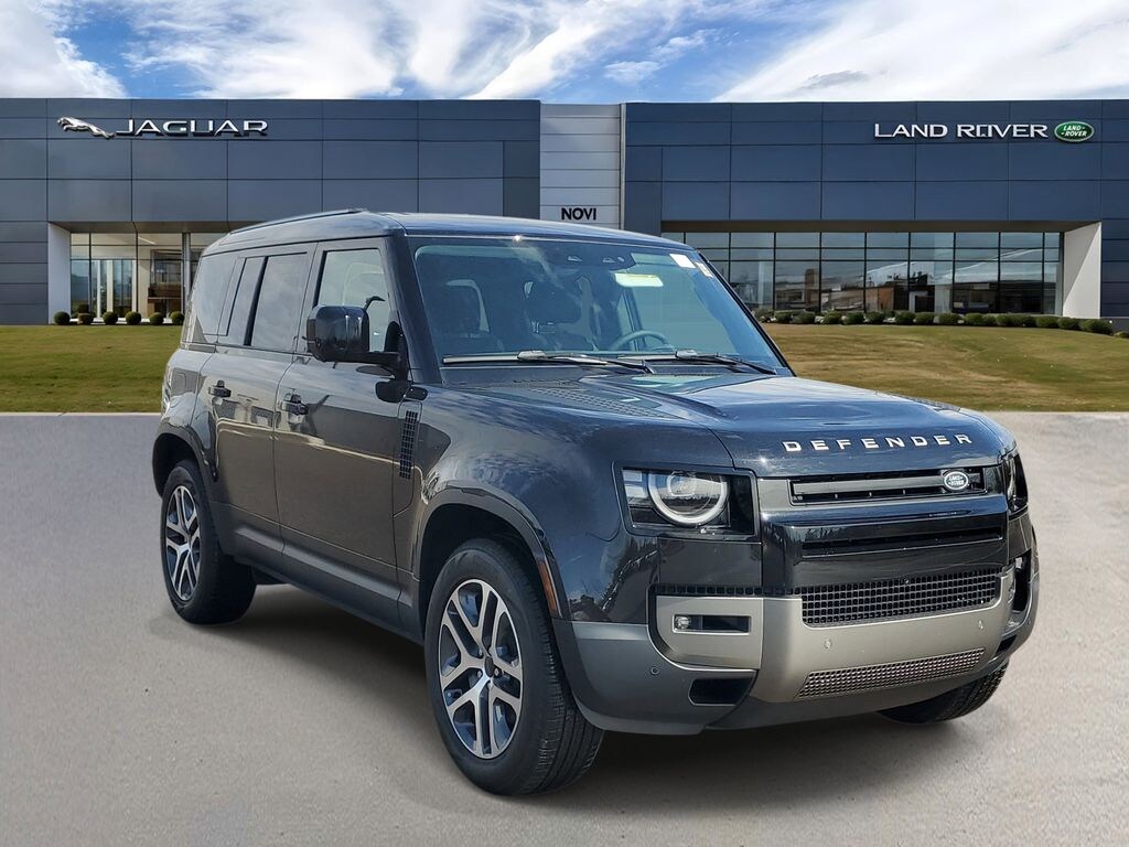 Santorini Black Metallic 2026 Land Rover Defender 110 S AWD 8-Speed Automatic 2.0L I4 DI Turbocharged 11 Speakers, 12-Way Heated Electric Memory Front Seats, 4-Wheel Disc Brakes, ABS brakes, Air Conditioning, Alloy wheels, AM/FM radio: SiriusXM, Apple CarPlay & Android Auto, Auto High-beam Headlights, Auto tilt-away steering wheel, Auto-dimming door mirrors, Auto-dimming Rear-View mirror, Automatic temperature control, Brake assist, Bumpers: body-color, Compass, Delay-off headlights, Driver door bin, Driver vanity mirror, Dual front impact airbags, Dual front side impact airbags, Electronic Stability Control, Exterior Parking Camera Rear, Four wheel independent suspension, Front anti-roll bar, Front Bucket Seats, Front Center Armrest, Front dual zone A/C, Front fog lights, Front reading lights, Fully automatic headlights, Garage door transmitter: HomeLink, Heated door mirrors, Heated front seats, Heated steering wheel, Illuminated entry, Low tire pressure warning, Memory seat, Navigation system: Connected Navigation PIVI Pro, Occupant sensing airbag, Outside temperature display, Overhead airbag, Overhead console, Panic alarm, Passenger door bin, Passenger vanity mirror, Power door mirrors, Power driver seat, Power moonroof, Power passenger seat, Power steering, Power windows, Radio data system, Radio: Meridian Sound System, Rain sensing wipers, Rear anti-roll bar, Rear fog lights, Rear reading lights, Rear seat center armrest, Rear window defroster, Rear window wiper, Remote keyless entry, Resist and Resolve Seat Trim, Security system, Speed control, Speed-sensing steering, Speed-Sensitive Wipers, Split folding rear seat, Steering wheel memory, Steering wheel mounted audio controls, Tachometer, Telescoping steering wheel, Tilt steering wheel, Traction control, Trip computer, Variably intermittent wipers, Weather band radio, Wheels: 19" Gloss Sparkle Silver Style 6010.