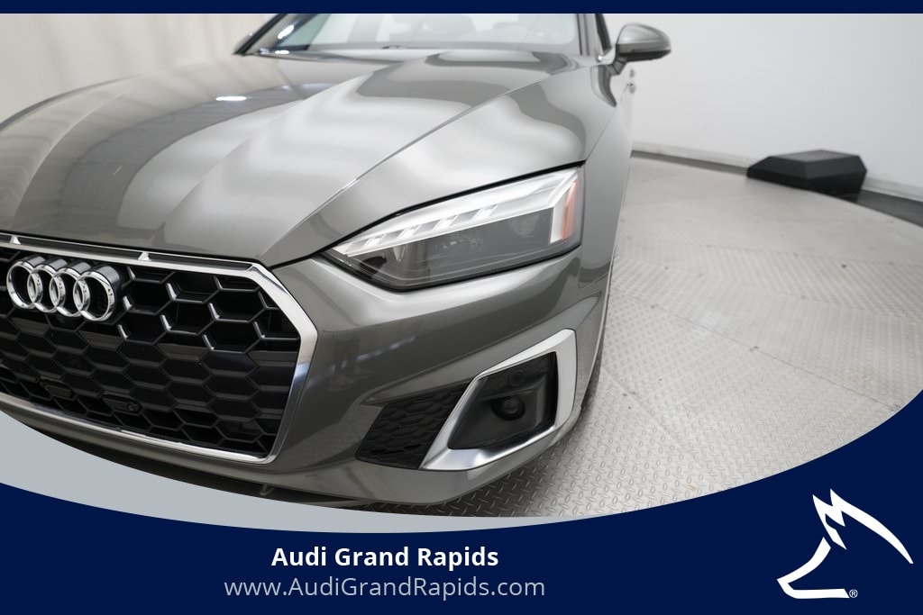 2023 Audi A5 Sportback S Line 45 TFSI Quattro finished in Chronos Gray Metallic over Black Leather. This one-owner A5 comes with a clean CarFax Report and is proudly offered for sale with an Audi Certified Pre-Owned Warranty.