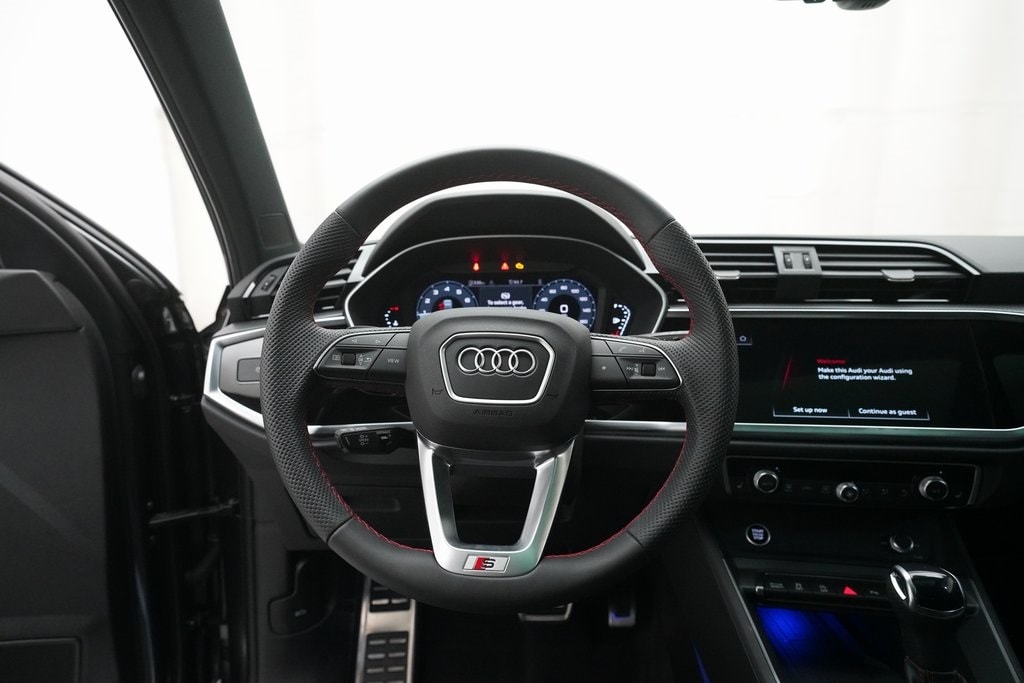 2025 Audi Q3 S Line 45 TFSI Quattro finished in Daytona Gray Pearl Effect over Black Leather with Red Stitching. This one-owner, retired Mobility Unit comes with a clean CarFax and is proudly offered with an Audi Certified Pre-Owned Warranty.