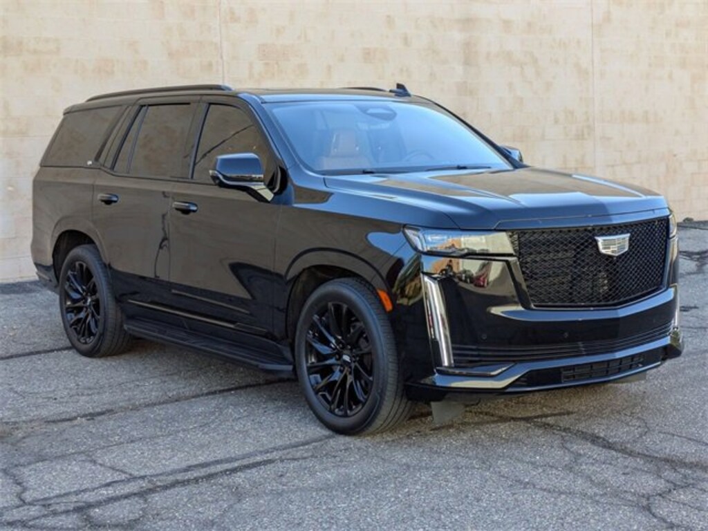 Certified. Black Raven 2024 Cadillac Escalade Sport 10-Speed Automatic 6.2L V8 Cadillac Certified Pre-Owned Certified, AWD, Brandy With Very Dark Atmosphere Accents Leather, Adaptive Cruise Control, Air Ride Adaptive Suspension, AKG Studio 19-Speaker Audio System, Automatic Seat Belt Tightening, Body-Color Door Handles, Door Lock & Latch Shields, Electronic Limited-Slip Differential, Enhanced Automatic Emergency Braking, Enhanced Automatic Parking Assist, Glass Breakage Sensor, Gloss Black Escalade Nameplate (LPO), Heated & Ventilated Driver & Front Passenger Seats, Hitch Guidance w/Hitch View, Illuminating Front & Rear Sill Plates, Integrated Trailer Brake Controller, Monochrome Cadillac Emblems (LPO), Navigation System, Onyx Package (LPO), Power Panoramic Tilt-Sliding Sunroof, Preferred Equipment Group 1SC, Puddle Lamps w/Cadillac Crest (LPO), Rear Camera Mirror, Rear Camera Mirror Washer, Rear Cross Traffic Alert, Reconfigurable Full-Color Head-Up Display, Reverse Automatic Braking, Running Board Assist Steps, Smart Trailer Integration Indicator, Soft Closing Front & Rear Doors, Theft-Deterrent Alarm System, Touring Package, Trailer Side Blind Zone Alert, Vehicle Inclination Sensor, Vehicle Interior Movement Sensor, Wheels: 22 12-Spoke Gloss Black Alloy (LPO), Wheels: 22 Interim (LPO), 16.9 Diagonal OLED Infotainment Screen, 19 Speakers, 2-Presets Memory For Driver Seat Adjuster, 3.23 Axle Ratio, 3rd row seats: split-bench, 4-Way Power Driver Lumbar Seat Adjuster, 4-Way Power Front Passenger Lumbar Seat Adjuster, 4-Wheel Disc Brakes, 8-Way Power Driver Seat Adjuster, 8-Way Power Front Passenger Seat Adjuster, ABS brakes, Adaptive suspension, Air Conditioning, Alloy wheels, AM/FM radio: SiriusXM with 360L, Apple CarPlay/Android Auto, Audio memory, Auto High-beam Headlights, Auto tilt-away steering wheel, Auto-dimming door mirrors, Auto-dimming Rear-View mirror, Automatic temperature control, Brake assist, Bumpers: body-color, Compass, Delay-off headlights, Driver door bin, Driver vanity mirror, Dual front impact airbags, Dual front side impact airbags, Electronic Stability Control, Emergency communication system: OnStar and Cadillac connected services capable, Exterior Parking Camera Rear, Four wheel independent suspension, Front anti-roll bar, Front Bucket Seats, Front Center Armrest w/Storage, Front dual zone A/C, Front reading lights, Fully automatic headlights, Garage door transmitter, HD Radio, Heads-Up Display, Heated door mirrors, Heated Driver & Front Passenger Seats, Heated front seats, Heated rear seats, Heated steering wheel, Illuminated entry, Leather Seating Surfaces w/Precision Perf Inserts, Low tire pressure warning, Magnetic Ride Control Suspension, Memory seat, Occupant sensing airbag, Outside temperature display, Overhead airbag, Overhead console, Panic alarm, Passenger door bin, Passenger vanity mirror, Power door mirrors, Power driver seat, Power Liftgate, Power moonroof, Power passenger seat, Power steering, Power windows, Radio data system, Radio: AM/FM w/Navigation, Rain sensing wipers, Rear air conditioning, Rear anti-roll bar, Rear reading lights, Rear Seat Entertainment System, Rear window defroster, Rear window wiper, Remote keyless entry, Security system, SiriusXM w/360L, Speed control, Split folding rear seat, Spoiler, Steering wheel memory, Steering wheel mounted audio controls, Tachometer, Teen Driver, Telescoping steering wheel, Tilt steering wheel, Traction control, Trip computer, Turn signal indicator mirrors, Variably intermittent wipers, Ventilated front seats, Voltmeter, Wheel Locks, Wheels: 22 12-Spoke Polished Alloy, Wireless Apple CarPlay/Wireless Android Auto, AWD, Brandy With Very Dark Atmosphere Accents Leather, Adaptive Cruise Control, Air Ride Adaptive Suspension, AKG Studio 19-Speaker Audio System, Automatic Seat Belt Tightening, Body-Color Door Handles, Door Lock & Latch Shields, Electronic Limited-Slip Differential, Enhanced Aut