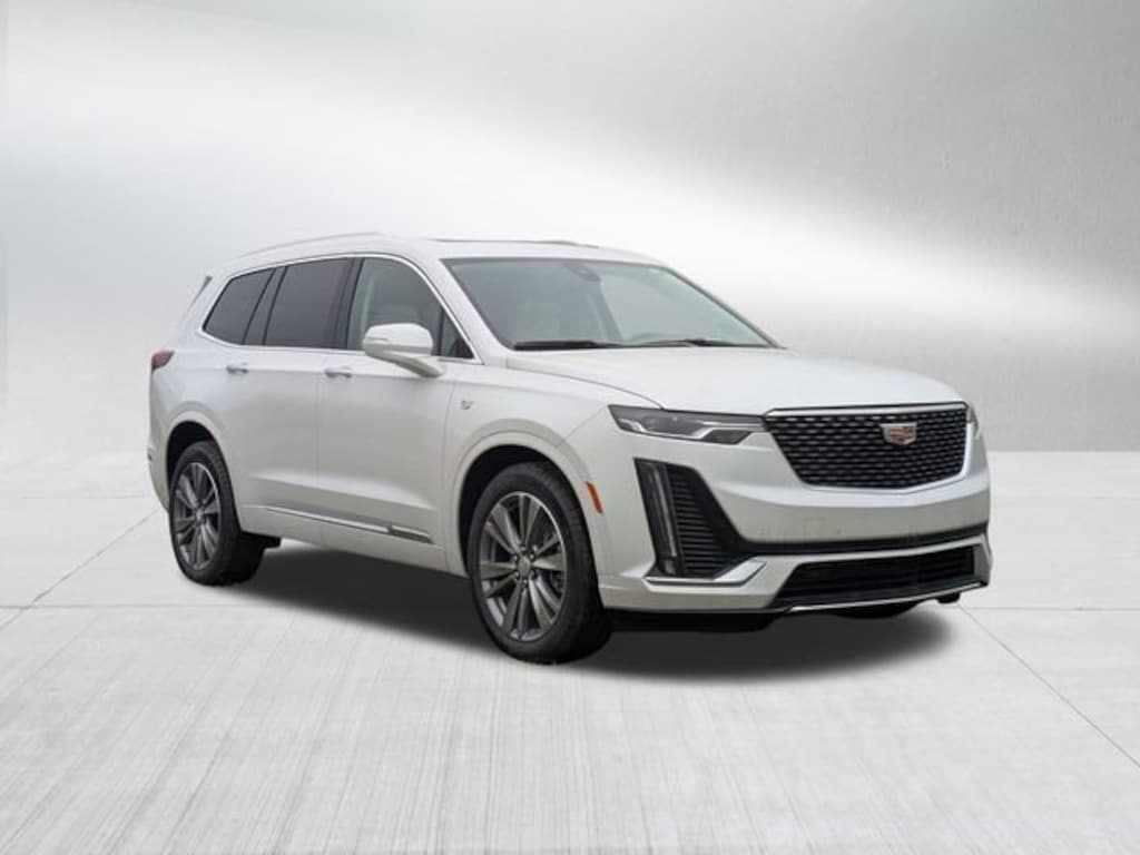 Crystal White Tricoat 2025 Cadillac XT6 Premium Luxury 9-Speed Automatic 3.6L V6 DI VVT 14 Speakers, 170 Amp Alternator, 2-Way Power Driver Lumbar Control Seat Adjuster, 2-Way Power Passenger Lumbar Control Seat Adjuster, 3rd row seats: split-bench, 4-Wheel Disc Brakes, 6-Passenger Seating, 8-Way Power Driver Seat Adjuster, ABS brakes, Air Conditioning, Alloy wheels, AM/FM radio: SiriusXM with 360L, Audio memory, Auto High-beam Headlights, Auto tilt-away steering wheel, Auto-dimming door mirrors, Auto-dimming Rear-View mirror, Automatic Emergency Braking, Automatic Stop/Start w/Disable, Automatic temperature control, Bose Performance Series Audio System, Brake assist, Bumpers: body-color, Compass, Contoured Floor Liners (LPO), Delay-off headlights, Driver & Front Passenger Heated Seats, Driver door bin, Driver vanity mirror, Dual Driver Info Center Display Gauge Cluster, Dual front impact airbags, Dual front side impact airbags, Electronic Stability Control, Emergency communication system: OnStar and Cadillac connected services capable, Floor Liner Package (LPO), Four wheel independent suspension, Front & Rear Park Assist, Front anti-roll bar, Front Bucket Seats, Front Center Armrest, Front dual zone A/C, Front reading lights, Fully automatic headlights, Garage door transmitter, Genuine wood dashboard insert, Genuine wood door panel insert, Heated door mirrors, Heated front seats, Heated rear seats, Heated steering wheel, Heavy-Duty Cooling System, Hitch Guidance, Hitch Guidance w/Hitch View, Illuminated entry, Inside Rear-View Auto-Dimming Mirror, Integrated Cargo Liner (LPO), Knee airbag, Leather Seating Surfaces w/Mini-Perforated Inserts, Leather steering wheel, Low tire pressure warning, Memory seat, Navigation System, Occupant sensing airbag, Outside temperature display, Overhead airbag, Overhead console, Panic alarm, Passenger door bin, Passenger vanity mirror, Power door mirrors, Power driver seat, Power Liftgate, Power moonroof: UltraView, Power passenger seat, Power steering, Power windows, Preferred Equipment Group 1SD, Radio data system, Radio: Cadillac User Experience w/Embedded Nav, Rain sensing wipers, Rear air conditioning, Rear anti-roll bar, Rear reading lights, Rear seat center armrest, Rear window defroster, Rear window wiper, Remote keyless entry, Ride & Handling Suspension, Security system, SiriusXM w/360L, Smart Towing, Speed control, Speed-sensing steering, Split folding rear seat, Spoiler, Steering wheel memory, Steering wheel mounted audio controls, Tachometer, Teen Driver, Telescoping steering wheel, Tilt steering wheel, Traction control, Trip computer, Turn signal indicator mirrors, Variably intermittent wipers, Ventilated Driver & Front Passenger Seats, Ventilated front seats, Voltmeter, Wheels: 20 6-Split Spoke Alloy, Wireless Apple CarPlay/Wireless Android Auto.Odometer is 2159 miles below market average!