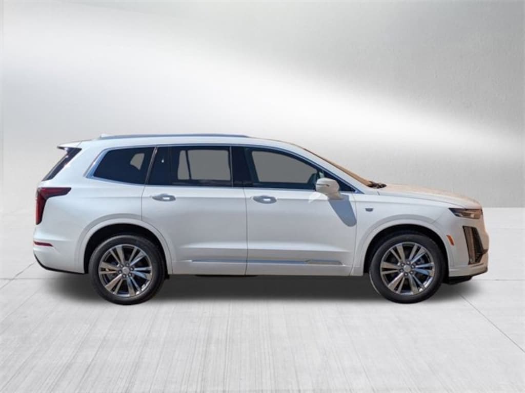 Crystal White Tricoat 2025 Cadillac XT6 Premium Luxury 9-Speed Automatic 3.6L V6 DI VVT 14 Speakers, 2-Way Power Driver Lumbar Control Seat Adjuster, 2-Way Power Passenger Lumbar Control Seat Adjuster, 3 Years SiriusXM, 3rd row seats: split-bench, 4-Wheel Disc Brakes, 6-Passenger Seating, 8-Way Power Driver Seat Adjuster, ABS brakes, Air Conditioning, Alloy wheels, AM/FM radio: SiriusXM with 360L, Audio memory, Auto High-beam Headlights, Auto tilt-away steering wheel, Auto-dimming door mirrors, Auto-dimming Rear-View mirror, Automatic Emergency Braking, Automatic Stop/Start w/Disable, Automatic temperature control, Bose Performance Series Audio System, Brake assist, Bumpers: body-color, Cargo Net, Compass, Contoured Floor Liners (LPO), Delay-off headlights, Driver & Front Passenger Heated Seats, Driver door bin, Driver vanity mirror, Dual Driver Info Center Display Gauge Cluster, Dual front impact airbags, Dual front side impact airbags, Electronic Stability Control, Emergency communication system: OnStar and Cadillac connected services capable, Floor Liner Package (LPO), Four wheel independent suspension, Front & Rear Park Assist, Front anti-roll bar, Front Bucket Seats, Front Center Armrest, Front dual zone A/C, Front reading lights, Fully automatic headlights, Garage door transmitter, Genuine wood dashboard insert, Genuine wood door panel insert, Heated door mirrors, Heated front seats, Heated rear seats, Heated steering wheel, Illuminated entry, Inside Rear-View Auto-Dimming Mirror, Integrated Cargo Liner (LPO), Knee airbag, Leather Seating Surfaces w/Mini-Perforated Inserts, Leather steering wheel, Low tire pressure warning, Memory seat, Navigation System, Occupant sensing airbag, Outside temperature display, Overhead airbag, Overhead console, Panic alarm, Passenger door bin, Passenger vanity mirror, Power door mirrors, Power driver seat, Power Liftgate, Power moonroof: UltraView, Power passenger seat, Power steering, Power windows, Preferred Equipment Group 1SD, Radio data system, Radio: Cadillac User Experience w/Embedded Nav, Rain sensing wipers, Rear air conditioning, Rear anti-roll bar, Rear reading lights, Rear seat center armrest, Rear window defroster, Rear window wiper, Remote keyless entry, Ride & Handling Suspension, Security system, SiriusXM w/360L, Speed control, Speed-sensing steering, Split folding rear seat, Spoiler, Steering wheel memory, Steering wheel mounted audio controls, Tachometer, Teen Driver, Telescoping steering wheel, Tilt steering wheel, Traction control, Trip computer, Turn signal indicator mirrors, Variably intermittent wipers, Ventilated Driver & Front Passenger Seats, Ventilated front seats, Voltmeter, Wheels: 20 6-Split Spoke Alloy, Wireless Apple CarPlay/Wireless Android Auto.
