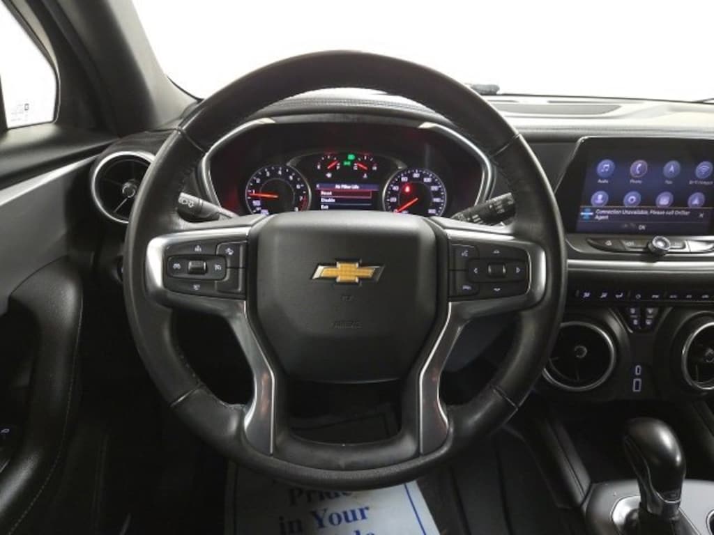 AWD, 120-Volt Power Outlet, 2 USB Data Ports w/SD Card Reader, 4-Wheel Disc Brakes, 6 Speakers, 6-Speaker Audio System Feature, 6-Way Power Front Passenger Seat Adjuster, ABS brakes, Air Conditioning, Alloy wheels, AM/FM radio: SiriusXM, Apple CarPlay/Android Auto, Auto High-beam Headlights, Auto-dimming door mirrors, Auto-dimming Rear-View mirror, Automatic temperature control, Black Roof Rails, Brake assist, Bumpers: body-color, Child-Seat-Sensing Airbag, Compass, Delay-off headlights, Driver door bin, Driver vanity mirror, Dual front impact airbags, Dual front side impact airbags, Electronic Stability Control, Emergency communication system: OnStar and Chevrolet connected services capable, Exterior Parking Camera Rear, Four wheel independent suspension, Front anti-roll bar, Front Bucket Seats, Front Center Armrest, Front dual zone A/C, Front reading lights, Fully automatic headlights, Garage door transmitter, HD Surround Vision, Heated door mirrors, Heated Driver & Front Passenger Seats, Heated front seats, Heavy-Duty Cooling System, High-Intensity Discharge Headlights, Hitch Guidance, Hitch Guidance w/Hitch View, Illuminated entry, Inside Rear-View Auto-Dimming Mirror, Knee airbag, Lane Change Alert w/Side Blind Zone Alert, Leather Shift Knob, Low tire pressure warning, Occupant sensing airbag, Outside Heated Power-Adjustable Body-Color Mirrors, Outside temperature display, Overhead airbag, Overhead console, Panic alarm, Passenger door bin, Passenger vanity mirror, Perforated Leather-Appointed Seat Trim, Power door mirrors, Power driver seat, Power Liftgate, Power passenger seat, Power steering, Power windows, Preferred Equipment Group 3LT, Radio data system, Radio: Chevrolet Infotainment 3 Plus System, Radio: Chevrolet Infotainment 3 System, Rear anti-roll bar, Rear Camera Mirror, Rear Camera Mirror Washer, Rear Cross Traffic Alert, Rear Park Assist w/Audible Warning, Rear Power Programmable Liftgate, Rear reading lights, Rear seat center armrest, Rear window defroster, Rear window wiper, Remote keyless entry, Remote Start, Ride & Handling Suspension, Security system, SiriusXM Radio, SiriusXM w/360L, Sound & Technology Package, Speed control, Speed-sensing steering, Split folding rear seat, Spoiler, Steering wheel mounted audio controls, Tachometer, Telescoping steering wheel, Tilt steering wheel, Traction control, Trailering Equipment, Trip computer, Turn signal indicator mirrors, Universal Home Remote, Variably intermittent wipers, Voltmeter, Wheels: 18 Bright Silver Aluminum, AWD.CARFAX One-Owner.Silver Ice Metallic 2021 Chevrolet Blazer LT AWD 9-Speed Automatic 3.6L V6 SIDI DOHC VVTAwards:* JD Power Automotive Performance, Execution and Layout (APEAL) Study