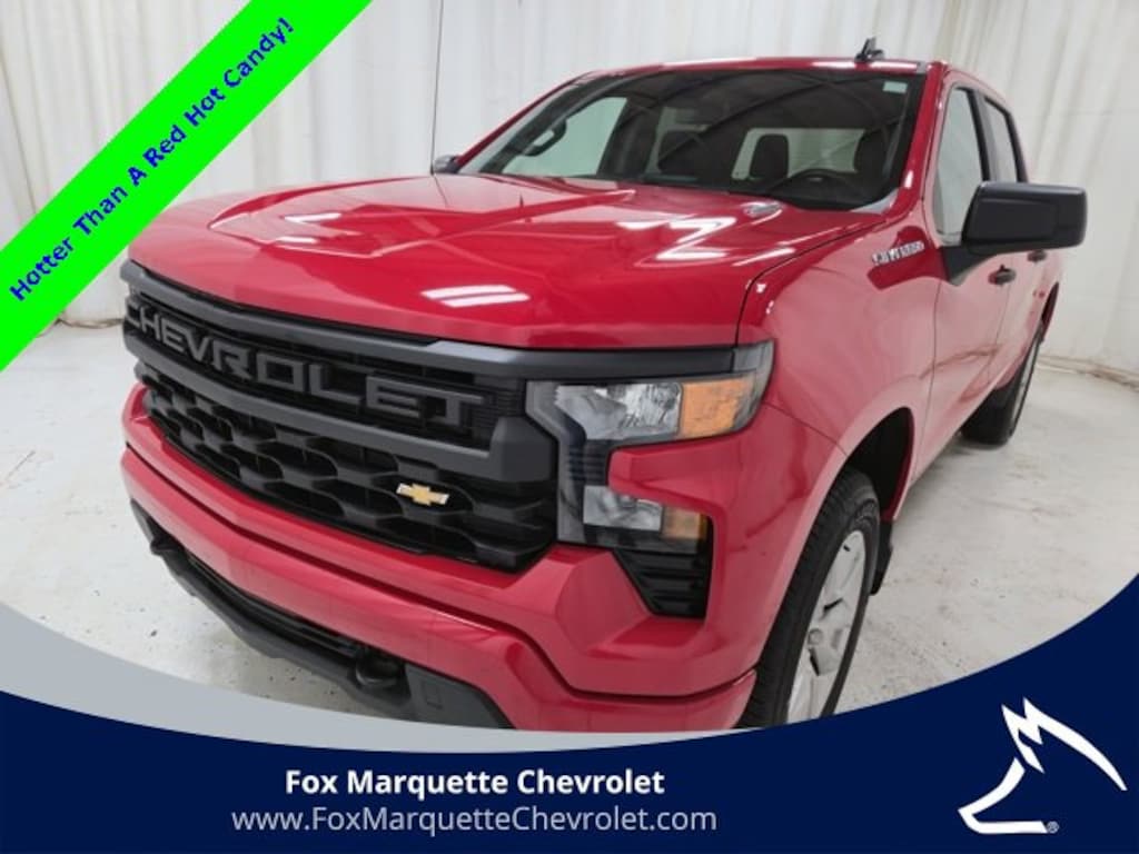 8-Speed Automatic, 4WD, Black Cloth, 10-Way Power Driver Seat w/Lumbar, 120-Volt Bed Mounted Power Outlet, 120-Volt Interior Power Outlet, 3.42 Rear Axle Ratio, 3.5 Monochromatic Display Driver Info Center, 4-Wheel Disc Brakes, 40/20/40 Front Split-Bench Seat, 6 Speakers, 6-Speaker Audio System, ABS brakes, Air Conditioning, Alloy wheels, AM/FM radio: SiriusXM, Apple CarPlay/Android Auto, Auto High-beam Headlights, Automatic Emergency Braking, Bluetooth® For Phone, Brake assist, Bumpers: body-color, Cloth Seat Trim, Color-Keyed Carpeting Floor Covering, Compass, Custom Convenience Package, Custom Value Package, Deep-Tinted Glass, Delay-off headlights, Driver door bin, Driver vanity mirror, Dual front impact airbags, Dual front side impact airbags, Dual Rear USB Ports (Charge Only), Electric Rear-Window Defogger, Electronic Cruise Control, Electronic Stability Control, Emergency communication system: OnStar, EZ Lift Power Lock & Release Tailgate, Following Distance Indicator, Forward Collision Alert, Front anti-roll bar, Front Center Armrest w/Storage, Front Frame-Mounted Black Recovery Hooks, Front License Plate Kit, Front Pedestrian Braking, Front reading lights, Front Rubberized Vinyl Floor Mats, Front wheel independent suspension, Fully automatic headlights, HD Rear Vision Camera, Heated door mirrors, High Capacity Suspension Package, Hitch Guidance, Illuminated entry, IntelliBeam Automatic High Beam On/Off, Lane Keep Assist w/Lane Departure Warning, LED Cargo Area Lighting, Low tire pressure warning, Manual Tilt Wheel Steering Column, Occupant sensing airbag, OnStar Services Capable, Outside temperature display, Overhead airbag, Overhead console, Panic alarm, Passenger door bin, Passenger vanity mirror, Power door mirrors, Power driver seat, Power Front Windows w/Driver Express Up/Down, Power Front Windows w/Passenger Express Down, Power Rear Windows w/Express Down, Power steering, Power windows, Preferred Equipment Group 1CX, Premium audio system: Chevrolet Infotainment 3, Radio data system, Radio: Chevrolet Infotainment 3 System, Rear 60/40 Folding Bench Seat (Folds Up), Rear reading lights, Rear Rubberized-Vinyl Floor Mats, Rear step bumper, Rear window defroster, Remote Keyless Entry, Remote keyless entry, Remote Vehicle Starter System, Security system, SiriusXM Trial Subscription, Speed control, Speed-sensing steering, Split folding rear seat, Standard Tailgate, Tachometer, Teen Driver, Theft Deterrent System (Unauthorized Entry), Tilt steering wheel, Tire Pressure Monitoring System, Traction control, Trailering Package, Trip computer, Variably intermittent wipers, Voltmeter, Wheels: 20 x 9 Bright Silver Painted Aluminum, Wi-Fi Hot Spot Capable, 8-Speed Automatic, 4WD, Black Cloth.CARFAX One-Owner. Clean CARFAX.Red Hot 2025 Chevrolet Silverado 1500 Custom 4WD 8-Speed Automatic 2.7L I4 Turbocharged DOHC 16V LEV3-SULEV30 310hp