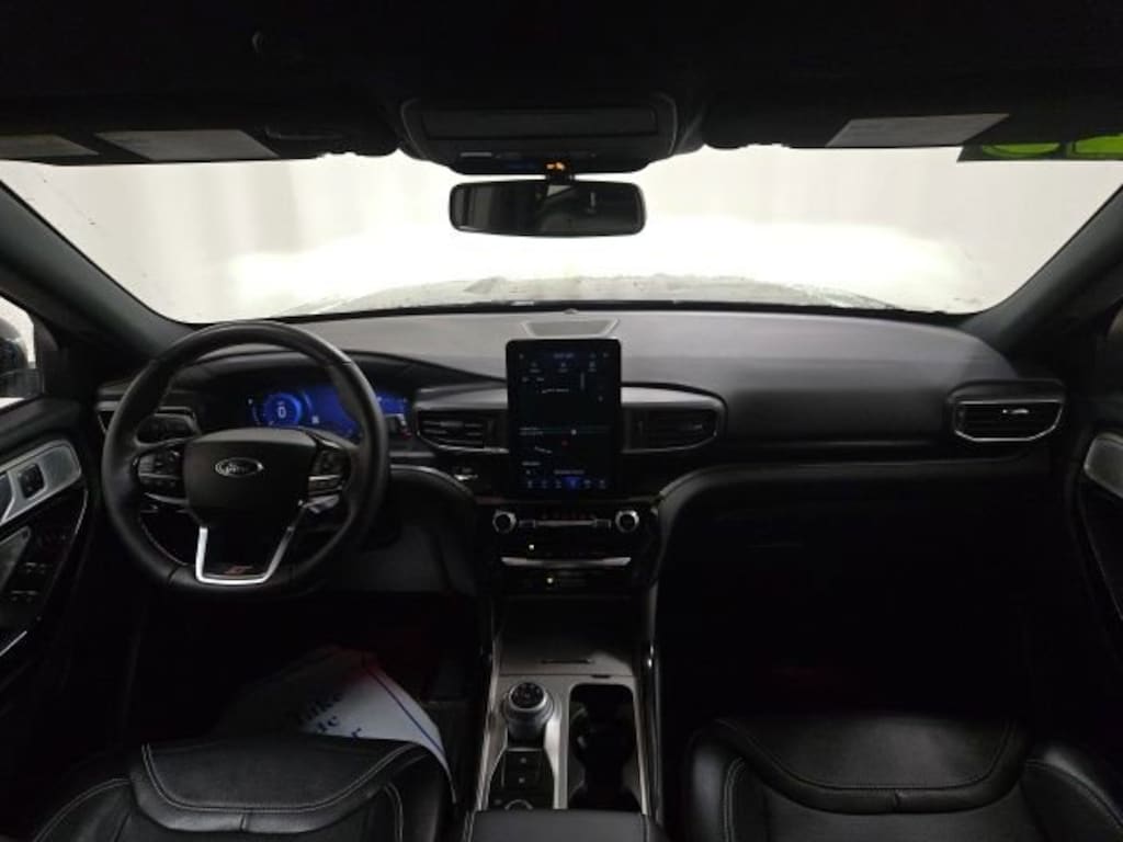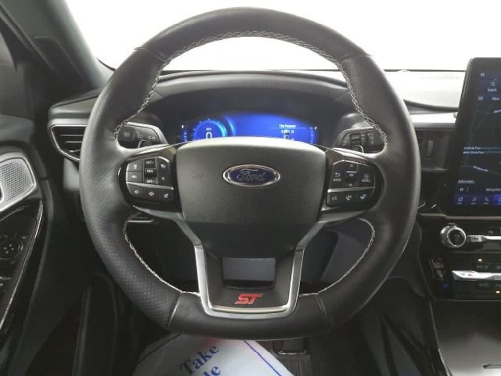 4WD, 10.1 LCD Capacitive Portrait Touchscreen, 110V/150W AC Power Outlet, 2 Additional Speakers, 20 Machined Aluminum w/Painted Pockets Wheels, 3.58 Non-Limited-Slip Rear Axle Ratio, 360-Degree Camera w/Split View, 3rd row seats: bench, 4-Wheel Disc Brakes, 4G LTE Wi-Fi Hotspot Credit, 6 Speakers, ABS brakes, Air Conditioning, Alloy wheels, AM/FM radio: SiriusXM, AM/FM Stereo, Auto High-beam Headlights, Auto-Dimming Rearview Mirror (Interior), Automatic temperature control, Brake assist, Bumpers: body-color, Compass, Delay-off headlights, Driver door bin, Driver vanity mirror, Dual front impact airbags, Dual front side impact airbags, Electronic Stability Control, Emergency communication system: SYNC 3 911 Assist, Equipment Group 401A, Evasive Steering Assist, Exterior Parking Camera Rear, Ford Co-Pilot360 Assist+, FordPass Connect, Four wheel independent suspension, Front anti-roll bar, Front Bucket Seats, Front Center Armrest, Front dual zone A/C, Front fog lights, Front Parking Sensors, Front Rain-Sensing Wipers, Front reading lights, Fully automatic headlights, Heated door mirrors, Heated front seats, Heated steering wheel, Illuminated entry, Intelligent Adaptive Cruise Control, Knee airbag, Leather Htd/Ventilated Sport Captain's Chairs, Leather steering wheel, Low tire pressure warning, Memory Driver's Seat, Memory seat, Occupant sensing airbag, Outside temperature display, Overhead airbag, Overhead console, Panic alarm, Passenger door bin, Passenger vanity mirror, Performance Front & Rear Brakes, Power door mirrors, Power driver seat, Power Liftgate, Power passenger seat, Power steering, Power Tilt/Telescoping Steering Column, Power windows, Radio: B&O Sound System by Bang & Olufsen, Rear air conditioning, Rear anti-roll bar, Rear reading lights, Rear window defroster, Rear window wiper, Remote keyless entry, Reverse Brake Assist, Second Row Heated Seats, Security system, SelectShift Capability w/Paddle Shifters, Sideview Mirrors w/Gloss Black Caps, Speed control, Speed Sign Recognition, Speed-sensing steering, Speed-Sensitive Wipers, Split folding rear seat, Spoiler, Sport steering wheel, ST High Package, ST Street Pack, Steering wheel mounted audio controls, SYNC 3 Communications & Entertainment System, SYNC 3/Apple CarPlay/Android Auto, Tachometer, Technology Package, Telescoping steering wheel, Third Row PowerFold (Folds Flat), Tilt steering wheel, Traction control, Trip computer, Universal Garage Door Opener (UGDO), Variably intermittent wipers, Ventilated front seats, Voice-Activated Touchscreen Navigation System, Wheels: 21 Aluminum, Wireless Charging Pad, 4WD.CARFAX One-Owner. Clean CARFAX.Black Metallic 2023 Ford Explorer ST 4WD 10-Speed Automatic 3.0L EcoBoost V6