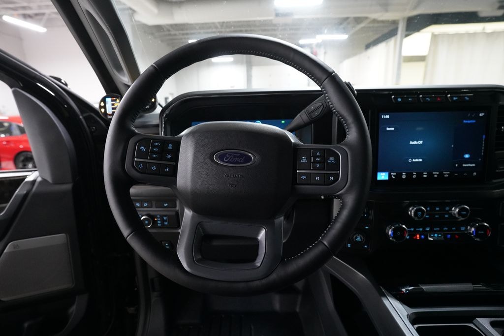 4WD, 190 Amp Alternator, 4-Way Adjustable Headrests, 4-Wheel Disc Brakes, 410 Amp Dual Alternators, 5th Wheel/Gooseneck Hitch Prep Package, 6" Ebony Black Angular Running Boards, 8 Speakers, ABS Brakes, Adjustable pedals, Air Conditioning, Alloy wheels, AM/FM radio: SiriusXM with 360L, Auto High-beam Headlights, Auto tilt-away steering wheel, Auto-dimming Rear-View mirror, Automatic High Beam, Automatic temperature control, Black Appearance Package, BLIS w/Cross-Traffic Alert, Body Color Front & Rear Bumpers, Brake Assist, Bumpers: chrome, Compass, Delay-off headlights, Driver door bin, Driver vanity mirror, Dual 68 AH/65 AGM Batteries, Dual front impact airbags, Dual front side impact airbags, Dual-Climate Control, Ebony Black Painted Front Grille Bars, Ebony Black Painted Mirror Caps, Electronic Stability Control, Emergency communication system: SYNC 4 911 Assist, Engine Block Heater, Flow-Through Console, Ford Pro Upfit Integration System, Front anti-roll bar, Front Bucket Seats, Front Center Armrest, Front Fog Lights, Front Leather-Trimmed 40/Console/40 Seats, Front reading lights, Front Sensing System, Fully Automatic Headlights, Garage door transmitter, Gooseneck Hitch Kit (Pre-Installed), Head-Up Display, Heated Front Seats, Heated Rear Seats, Heated Sideview Mirrors, Heated Steering Wheel, Illuminated Entry, Intelligent Adaptive Cruise Control w/Stop-and-Go, Lane-Keeping System, Lariat Ultimate Package, Leather Steering Wheel, LED Roof Clearance Lights, Low Tire Pressure Warning, Max Recline Seats, Memory seat, Navigation system: Connected Navigation (includes complimentary 1-year trial), Order Code 618A, Outside Temperature Display, Overhead airbag, Overhead Console, Panic alarm, Passenger door bin, Passenger vanity mirror, Pedal memory, Post-Collision Braking, Power Adjusting Driver Seat, Power passenger seat, Power Sideview Mirrors, Power Steering, Power Windows, Power-Deployable Running Boards, Pre-Collision Assist, Pro Trailer Backup Assist, Pro Trailer Hitch Assist, Radio: B&O Sound System by Bang & Olufsen, Radio: B&O Unleashed Sound System by Bang & Olufsen, Rain Sensing Wipers, Rear reading lights, Rear seat center armrest, Rear Step Bumper, Rear Wheel Well Liners (Pre-Installed), Rear-View Camera, Rear/Front Window Defroster, Remote keyless entry, Security system, SiriusXM Radio w/360L, Speed Control, Split Folding Rear Seat, Steering wheel memory, Steering Wheel Mounted Audio Controls, SYNC 4 w/Enhanced Voice Recognition, Tachometer, Tailgate Step & Handle, Telescoping steering wheel, Tilt steering wheel, Tough Bed Spray-In Bedliner, Traction Control, Trip computer, Turn signal indicator mirrors, Upfitter Switches (6), Variably intermittent wipers, Ventilated Front Seats, Wheels: 18" Bright Machined & Carbonized Gray Alum, Wheels: 20" Machined & Ebony Black High Gloss, Wireless Charging Pad, 4WD.