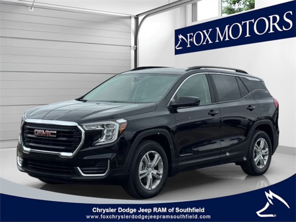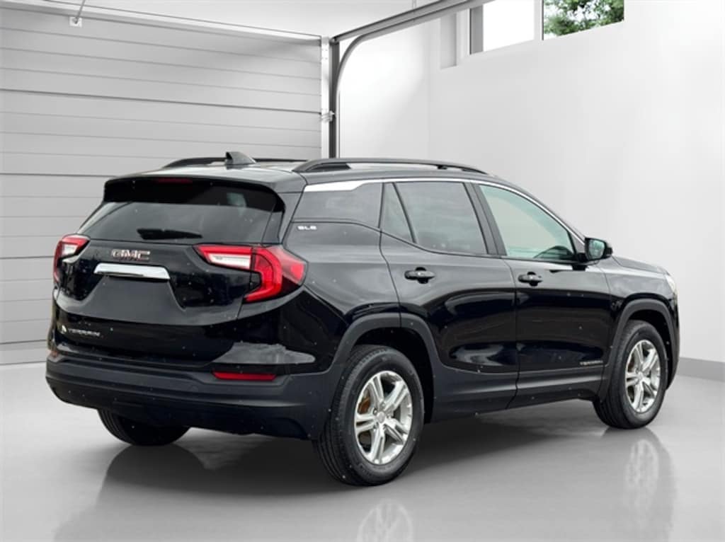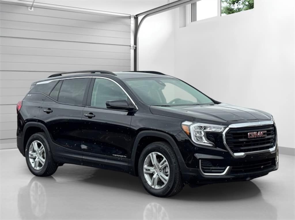 Ebony Twilight Metallic 2023 GMC Terrain SLE 9-Speed Automatic 1.5L DOHC Terrain SLE, 1.5L DOHC, FWD, Ebony Twilight Metallic, Jet Black Cloth, 2 USB Data Ports w/Auxiliary Input Jack, 4.2" Multi-Color Driver Information Screen, 6-Speaker Audio System Feature, 8-Way Power Driver Seat Adjuster, Automatic temperature control, Bluetooth® For Phone, Driver & Front Passenger Heated Seats, Driver Convenience Package, Dual-Zone Automatic Climate Control, Floor Liner Package (LPO), Front & Rear All-Weather Floor Liners (LPO), Integrated Cargo Liner (LPO), Power Driver Lumbar Control, Power Programmable Rear Liftgate, Preferred Equipment Group 3SA, Radio: GMC Infotainment Audio System w/7" Display, Remote Start, Roof-Mounted Luggage Rack Side Rails, SiriusXM Radio, Wheels: 17" x 7" Silver Painted Aluminum, Wireless Apple CarPlay/Wireless Android Auto.
