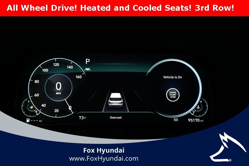 12 Speakers, 3.648 Axle Ratio, 3rd Row Seats, 4-Wheel Disc Brakes, ABS Brakes, Air Conditioning, Alloy wheels, AM/FM Radio, Available Sirius XM Radio, Apple CarPlay & Android Auto, Auto High-beam Headlights, Auto-dimming Rear-View mirror, Auto-leveling suspension, Automatic temperature control, Brake Assist, Bumpers: body-color, Compass, Delay-off headlights, Driver door bin, Driver vanity mirror, Dual front impact airbags, Dual front side impact airbags, Dual-Climate Control, Electronic Stability Control, Emergency communication system: Blue Link Connected Car Service (3-year complimentary subscription), Four wheel independent suspension, Front anti-roll bar, Front Bucket Seats, Front Center Armrest, Front reading lights, Fully Automatic Headlights, Garage door transmitter: HomeLink, harman/kardon® Speakers, Heads-Up Display, Heated & Ventilated Front Bucket Seats, Heated Front Seats, Heated Rear Seats, Heated Sideview Mirrors, Heated Steering Wheel, Illuminated Entry, Knee airbag, Low Tire Pressure Warning, Memory seat, Navigation System, Occupant sensing airbag, Option Group 01, Outside Temperature Display, Overhead airbag, Overhead console, Panic Alarm, Passenger door bin, Passenger vanity mirror, Power Adjusting Driver Seat, Power door mirrors, Power Liftgate, Power moonroof, Power passenger seat, Power steering, Power Windows, Premium Nappa Leather Seat Trim, Radio data system, Radio: AM/FM/MP3 Premium Audio System, Rain Sensing Wipers, Rear air conditioning, Rear anti-roll bar, Rear reading lights, Rear Spoiler, Rear Window Wiper, Rear/Front Window Defroster, Reclining 3rd row seat, Remote Keyless Entry, Security System, Speed control, Speed-sensing steering, Split Folding Rear Seat, Steering Wheel Mounted Controls, Tachometer, Telescoping steering wheel, Tilt steering wheel, Traction Control, Trip computer, Turn Signal Indicator Mirrors, Variably intermittent wipers, Ventilated Front Seats, Ventilated rear seats, Wheels: 20" x 7.5J Calligraphy Exclusive Alloy.