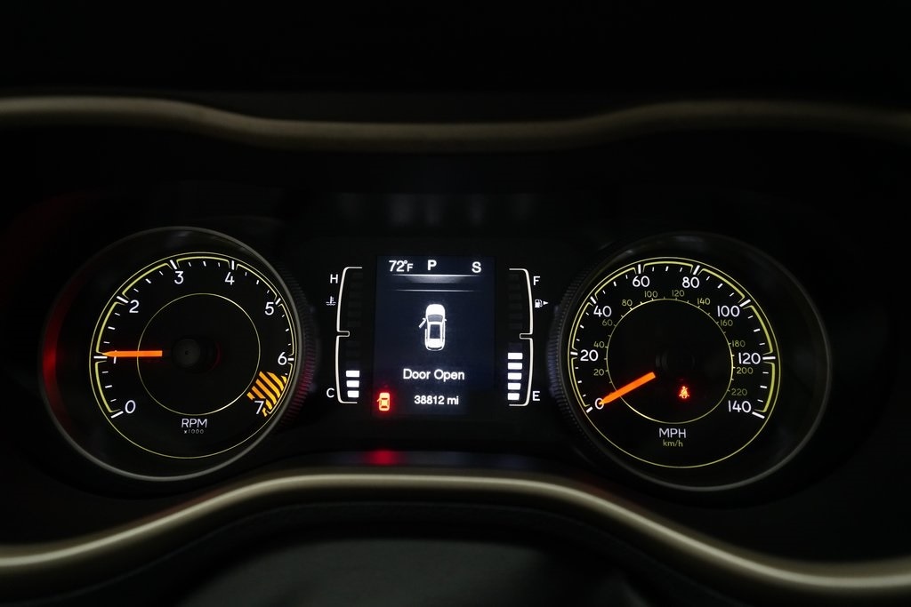 3.73 Axle Ratio, 4-Wheel Disc Brakes, 6 Speakers, 600 Amp Maintenance Free Battery, ABS Brakes, Active Grille Shutters, AM/FM Radio, Anti-whiplash front head restraints, Auxiliary Transmission Oil Cooler, Brake Assist, Bumpers: body-color, Cloth Low-Back Bucket Seats, Compass, Delay-off headlights, Driver door bin, Driver vanity mirror, Dual front impact airbags, Dual front side impact airbags, Electronic Stability Control, Engine Oil Cooler, Four wheel independent suspension, Front anti-roll bar, Front Bucket Seats, Front Center Armrest, Front reading lights, Illuminated Entry, Knee airbag, Low Tire Pressure Warning, Normal Duty Suspension, Occupant sensing airbag, Outside Temperature Display, Overhead airbag, Overhead Console, Panic alarm, Passenger door bin, Passenger vanity mirror, Power Sideview Mirrors, Power Steering, Power Windows, Quick Order Package 24A, Radio data system, Rear anti-roll bar, Rear reading lights, Rear seat center armrest, Rear side impact airbag, Rear Spoiler, Rear Window Wiper, Rear/Front Window Defroster, Remote keyless entry, Speed Control, Speed-sensing steering, Split Folding Rear Seat, Tachometer, Telescoping steering wheel, Tilt steering wheel, Traction Control, Trip computer, Uconnect 3 w/5" Display, Variably intermittent wipers, Voltmeter, Wheels: 17" x 7" Full Face Steel.