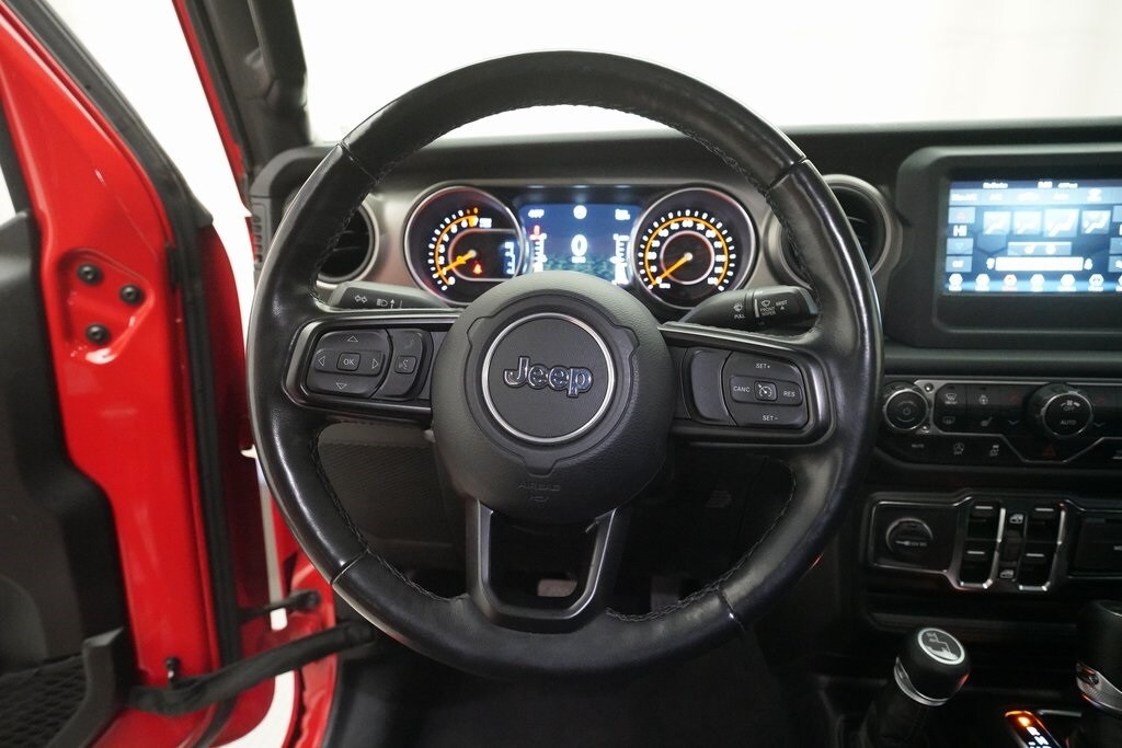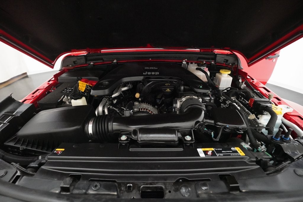 110 mph Vehicle Max Speed Calibration, 240 Amp Alternator, 3.73 Rear Axle Ratio, 4-Wheel Disc Brakes, 4-Wheel Drive Decal, 7.0" Touch Screen Display, 8 Speakers, 97 mph Maximum Speed Calibration, ABS Brakes, Air Conditioning, Air Conditioning w/Auto Temperature Control, AM/FM Radio, Anti-Lock 4-Wheel Disc Heavy Duty Brakes, Anti-Spin Differential Rear Axle, Apple CarPlay, Automatic Headlamps, Black 3-Piece Hard Top, Black Grille, Black Trail Rated Badge, Body Color Fender Flares (2-Piece), Brake assist, Bridgestone Brand Tires, Class IV Hitch Receiver, Cloth Low-Back Bucket Seats, Cluster 7.0" TFT Color Display, Cold Weather Group, Compass, Convenience Group, Daytime Running Lamp System, Deep Tint Sunscreen Windows, Delay-off headlights, Driver door bin, Driver vanity mirror, Dual front impact airbags, Dual front side impact airbags, Electronic Stability Control, For More Info, Call 800-643-2112, Freedom Panel Storage Bag, Front 1-Touch Down Power Windows, Front anti-roll bar, Front Bucket Seats, Front Center Armrest w/Storage, Front Fog Lights, Front Heavy Duty Red Accent Shock Absorbers, Front reading lights, Google Android Auto, GPS Antenna Input, Heavy-Duty Engine Cooling, Integrated Center Stack Radio, Integrated roll-over protection, Integrated Voice Command w/Bluetooth, Leather Wrapped Steering Wheel, Low tire pressure warning, Manufacturer's Statement of Origin, Mold In Color Bumper w/Gloss Black, MOPAR All-Weather Floor Mats (DISC), No Soft Top, Normal Duty Suspension, Occupant sensing airbag, Outside Temperature Display, ParkView Rear Back-Up Camera, Passenger door bin, Passenger vanity mirror, Power Heated Mirrors, Power steering, Power Tailgate Lock, Protection Sill Rails, Quick Order Package 24W Willys, Radio data system, Radio: Uconnect 3 w/5" Display, Radio: Uconnect 4 w/7" Display, Rear anti-roll bar, Rear Heavy Duty Red Accent Shock Absorbers, Rear reading lights, Rear Sliding Window, Rear Window Defroster, Remote Keyless Entry, Security Alarm, SiriusXM Radio Service, SiriusXM Satellite Radio, Speed Control, Speed Sensitive Power Locks, Split Folding Rear Seat, Steering Wheel Mounted Audio Controls, Sun Visors w/Illuminated Vanity Mirrors, Tachometer, Technology Group, Telescoping steering wheel, Tilt steering wheel, Traction Control, Trailer Hitch Zoom, Trailer Tow Package, Trip computer, USB Host Flip, Variably intermittent wipers, Wheels: 17" x 7.5" Black Aluminum w/Gray Pad, Wheels: 17" x 7.5" Black Steel Styled, Willys, Willys Hood Decal. Willys 4WD 8-Speed Automatic 3.6L V6 24V VVT