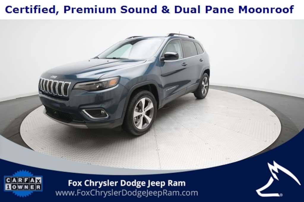 Recent Arrival! CARFAX One-Owner. Certified. Slate Blue Pearlcoat 2022 Jeep Cherokee Limited 4WD 10 Speakers, Alpine Sound, AM/FM Radio, Available Sirius XM Radio, Apple CarPlay/Android Auto, Heated Front Seats, ParkView Rear Back-Up Camera, Power Liftgate, Power Moonroof Sunroof, Power passenger seat, Premium Leather Trimmed Bucket Seats, Quick Order Package 26G, Radio: Uconnect 4 w/8.4" Display, Wheels: 18" x 7.0" Painted Diamond Cut Aluminum.