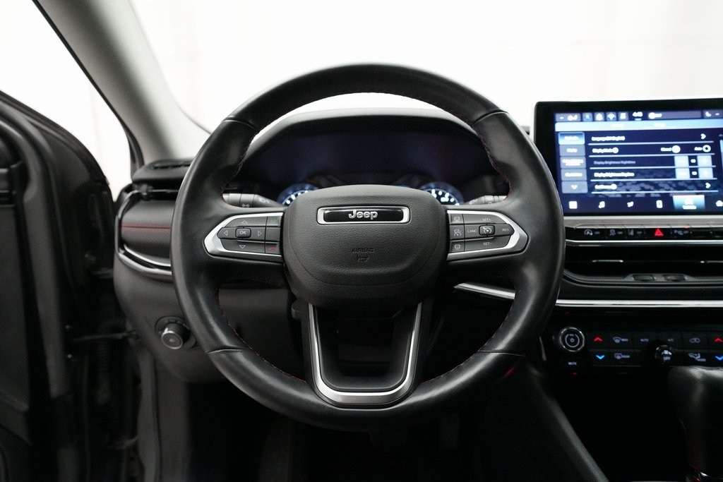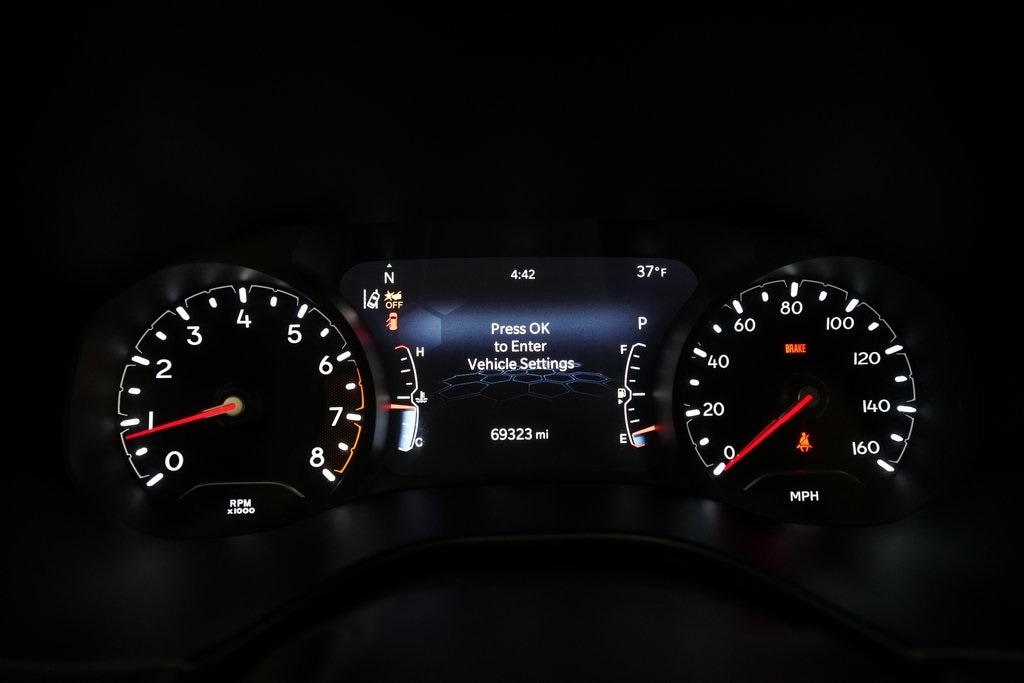 4WD, 10.1" Touchscreen Display, 115V Auxiliary Power Outlet, 2nd Row USB Type A/C Charge Only, 4-Wheel Disc Brakes, 4.334 Axle Ratio, 6 Speakers, ABS Brakes, Air Conditioning, Alloy wheels, AM/FM Radio, Available Sirius XM Radio, Anti-whiplash front head restraints, Auto High-beam Headlights, Auto-dimming Rear-View mirror, Automatic temperature control, Brake Assist, Bumpers: body-color, Compass, Delay-off headlights, Disassociated Touchscreen Display, Driver door bin, Driver vanity mirror, Dual front impact airbags, Dual front side impact airbags, Dual-Climate Control, Electronic Stability Control, Emergency communication system: SiriusXM Guardian, Four wheel independent suspension, Front anti-roll bar, Front Bucket Seats, Front Center Armrest w/Storage, Front Fog Lights, Front reading lights, Fully automatic headlights, Global Telematics Box Module (TBM), Heated Front Seats, Heated Sideview Mirrors, Illuminated Entry, Knee airbag, Leather Shift Knob, Leather Wrapped Steering Wheel, Low tire pressure warning, Occupant sensing airbag, Outside Temperature Display, Overhead airbag, Overhead console, Panic Alarm, ParkView Rear Back-Up Camera, Passenger door bin, Passenger vanity mirror, Power 2-Way Driver Lumbar Adjust, Power Adjust 8-Way Driver Seat, Power Sideview Mirrors, Power steering, Power Windows, Premium Cloth/Leather Trim Bucket Seats, Quick Order Package 2GE, Radio: Uconnect 5 w/10.1" Display, Rain Sensing Wipers, Rear anti-roll bar, Rear seat center armrest, Rear Spoiler, Rear Window Wiper, Rear/Front Window Defroster, Remote Keyless Entry, Remote Start System, Reversible Carpet/Vinyl Cargo Mat, Roof rack: rails only, Security System, Speed Control, Split Folding Rear Seat, Steering Wheel Mounted Audio Controls, Tachometer, Telescoping steering wheel, Tilt steering wheel, Traction Control, Trailhawk Convenience Group, Trip computer, Turn Signal Indicator Mirrors, Variably intermittent wipers, Vehicle Information Center, Wheels: 17" x 6.5" Painted Diamond Cut Aluminum, Windshield Wiper De-Icer, 4WD.