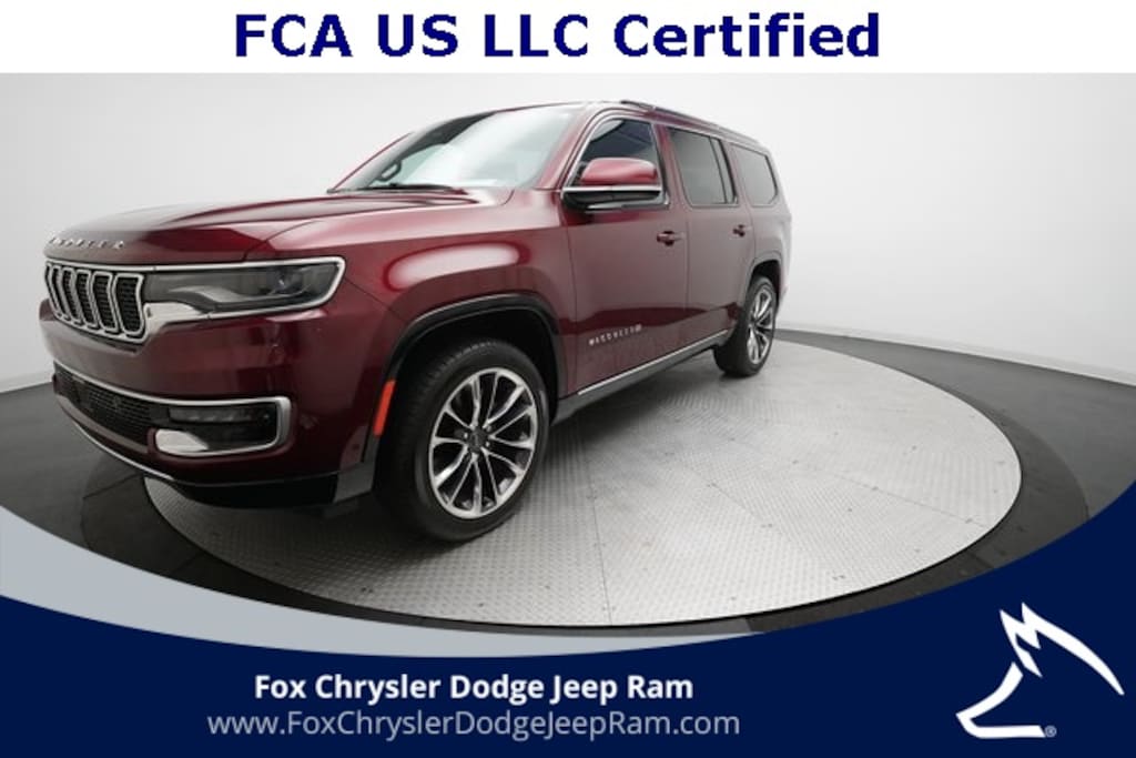 CARFAX One-Owner. Velvet Red Pearlcoat 2022 Jeep Wagoneer Series III 4WD 19 Speaker McIntosh Audio System, 3 Panel Sunroof, 3rd row seats: bench, 7-Passenger Seating, Adjustable Roof Rail Crossbars, Auto High-beam Headlights, Auto-leveling suspension, Automatic temperature control, Cargo Cover, Dual-Climate Control, Flexible Seating Group, Floor Console w/Cupholder, Front fog lights, Front Passenger Interactive Display, Fully automatic headlights, Garage door transmitter, Heads-Up Display, Heated Front Seats, Heated Rear Seats, Heated Steering Wheel, Leather Trimmed Bucket Seats, Luxury Front & Rear Floor Mats, Memory seat, Navigation System, Power Adjusting Driver Seat, Power Deployable Running Boards, Power Liftgate, Power passenger seat, Power Tip/Slide Recline 2nd Row Buckets, Premium Group I (DISC), Quick Order Package 22N, Radio: Uconnect 5 Nav w/10.1" Display, Rear air conditioning, Rear dual zone A/C, Reversible Carpet/Vinyl Cargo Mat, Ventilated front seats, Wheels: 22" x 9.0" Premium 3 Aluminum (DISC).